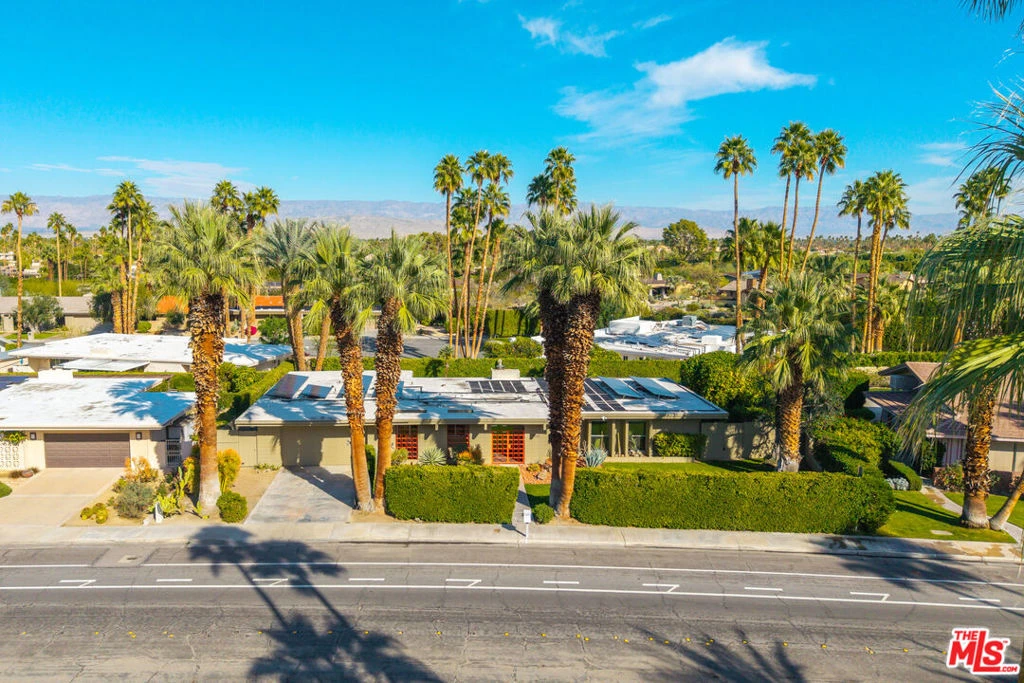 An authentic Mid-Century home invites you to embrace the lifestyle that only Palm Springs can offer. Set in the famous Indian Canyons neighborhood, this remodeled 4-bedroom, 3-bathroom residence sits on an oversized lot where you own the land and pay no HOA fees. Framed by breathtaking, unobstructed views of the San Jacinto Mountains, the backdrop feels straight out of a postcard. Designed for effortless desert living, the home blends iconic Mid-Century architecture with tasteful modern updates. The open-concept living and kitchen area is ideal for entertaining, where seamless indoor-outdoor living takes center stage. The newly remodeled chef's kitchen, featuring custom teak cabinetry, quartz countertops, stainless steel appliances, and a central island are perfect for morning coffee or sunset cocktails. Sleek flooring flows throughout, creating a cohesive and sophisticated aesthetic. Now with two primary suites that offers bright, inviting retreats, each with walk-in closets and direct access to the private yard. The vibrant renovated custom bathrooms make a statement with accent tiles, quartz vanities and backlit mirrors. Energy-efficient upgrades include paid solar panels, Fleetwood sliders, dual-pane windows, custom shades throughout, a Trane A/C , tankless water heater, and a new separate A/C system in the primary bedroom keeping comfort high and utility costs low. Step outside and let the sunshine bathe you in warmth as the sparkling pool and spa beckon. The private, serene yard is a true oasis, complete with fruit trees, multiple lounging areas, and the perfect setting for evening stargazing. Located in desirable South Palm Springs, away from the windy zone and in an active area, close distance to shops, dining, and hiking trails. This is the home you have been dreaming of.