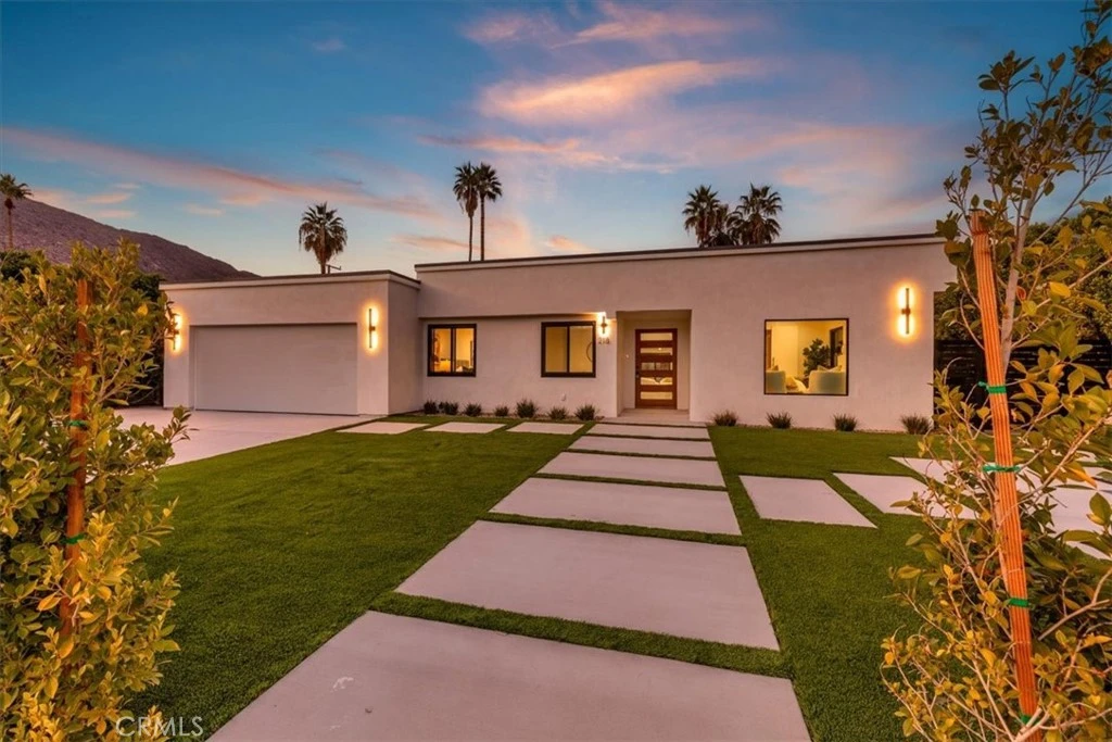 Experience modern luxury in this fully reimagined single-story home in the desirable Tahquitz River Estates. Situated on a generous 9,583 sq ft flat lot, this 4-bed, 3-bath, 2,554 sq ft residence was taken down to the studs, reconfigured with an open-concept layout, and rebuilt with full City permits, including all-new plumbing, electrical, insulation, drywall, HVAC, roof, windows, doors, flooring, fixtures, appliances, hardscaping, and landscaping. A sleek modern entry leads into an expansive living and dining area with oversized sliders showcasing stunning mountain views and true indoor/outdoor flow. The showpiece chef’s kitchen features a massive waterfall island, custom cabinetry, premium quartzite slab counters, full slab backsplash, stainless steel appliances, double ovens, a 6-burner range, wine/beverage storage, and designer lighting. The primary suite is a private retreat with vaulted ceilings, a modern fireplace, picture-window views, a walk-in closet, and a spa-caliber bathroom with an oversized glass shower, dual rainheads, skylight, floating vanity, and premium tilework. Three additional bedrooms offer exceptional versatility, including two en-suite rooms perfect for guests, multigenerational living, or home office needs. All bathrooms feature frameless glass showers, LED-lit mirrors, and floating vanities. The backyard delivers the ultimate Palm Springs resort experience with a newly renovated inground pool & spa, expansive patios, modern hardscaping, privacy walls, mature palms, and unobstructed desert hill and mountain vista views; ideal for entertaining or peaceful sunset evenings. Located in the coveted Tahquitz River Estates, this home offers quiet streets, lush palms, and unbeatable proximity to downtown. Just minutes from world-class dining, boutique shopping, art galleries, spa resorts, golf, and scenic hiking trails, the location blends serenity with convenience. Whether you seek a full-time residence, a weekend sanctuary, or a high-performing vacation rental, this property delivers the luxury and lifestyle buyers want. Move-in ready, fully renovated, and impeccably designed. Tour this exceptional Palm Springs retreat today.