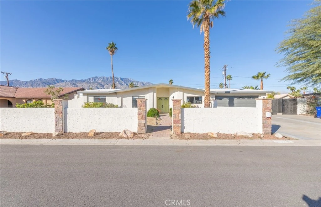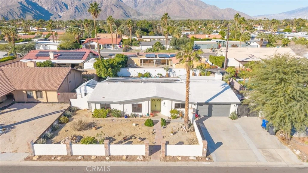 Welcome home to this spacious four-bedroom desert modern ranch, originally built in 1978 and thoughtfully improved for today’s living. This one-of-a-kind single story is perfect for a family who loves to entertain and build memories! The home offers both privacy, comfort and even RV parking! Enter through double doors into an open floor plan where the living and dining areas connect easily to a large kitchen with plenty of cabinet and counter space. The nearby family/game room includes a gas fireplace, bar area, and convenient access to the laundry room and oversized two-car garage with overhead storage. Sliding glass doors from the living room and game room offer easy access to the backyard. The flagstone patio was carefully installed stone by stone and includes covered areas, making it easy to enjoy year-round. The pool and spa are just steps from the house, along with a natural-gas BBQ island and firepit perfect from family entertainment. Additional features include owned solar installed in 2023, no HOA, and a .23-acre fee simple lot where you own the land. Located in the Gene Autry neighborhood, this home is close to downtown Palm Springs and offers easy access to main roads and the I-10 freeway.