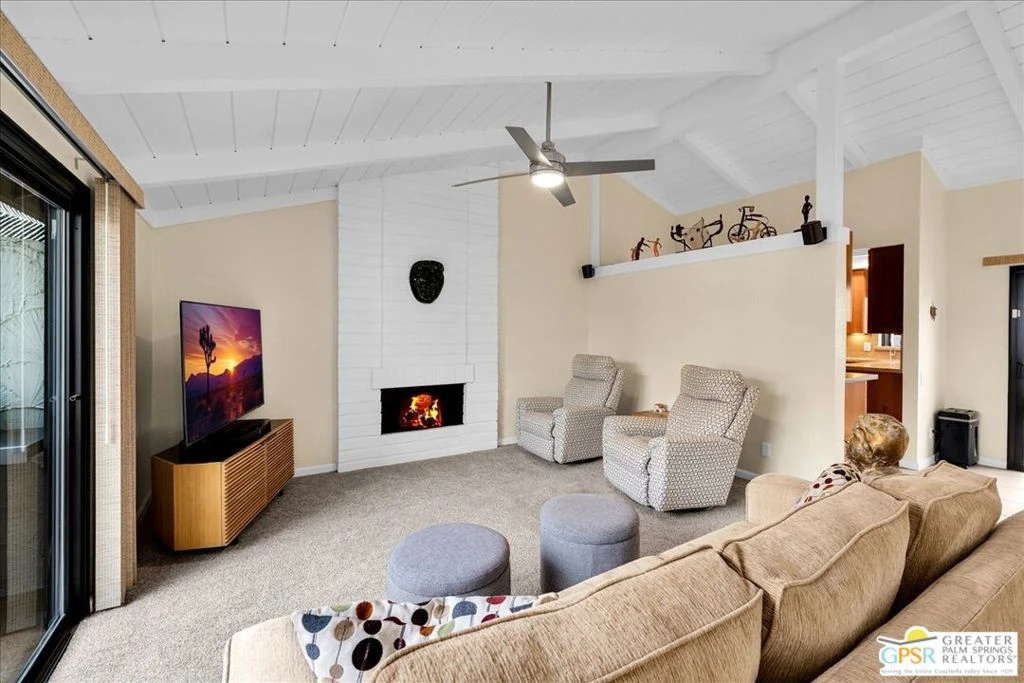 Welcome to Canyon Sands, a modern oasis in south Palm Springs! This beautifully updated 3-bedroom, 1,404-square-foot condo is the perfect blend of style, comfort, and convenience. Offered turnkey furnished, it's ready for you to move right in and start enjoying the quintessential desert lifestyle. Step inside to discover a light-filled interior with sleek finishes, dual-pane windows, and sliders that bring the outdoors in. Vaulted wood beamed ceiling and gas fireplace add stature to the large living area. Smart home technology adds a touch of modern luxury, making everyday living effortless. The layout flows seamlessly to not one, but two private patios ideal for morning coffee, al fresco dining, or simply soaking up the sunshine in privacy. The attached two car garage provides secure parking, and guest parking is available for your visitors. Situated in a vibrant community, this condo offers not only a beautiful home but an elevated living experience. HOA amenities include high speed internet; premium TV; water, sewer, trash, grounds, pools, spas, sport courts maintenance, earthquake insurance and roof. Thirty day minimum on short term rentals. Whether you're looking for a full-time residence, a weekend retreat, or an investment opportunity, this property delivers on all fronts. Don't miss your chance to own this slice of paradise in Palm Springs. Contact me today to schedule a viewing and make this dream home yours. Broker and broker's agents do not represent or guarantee accuracy of the square footage, bedroom/bathroom count, lot size / dimensions, permitted or not permitted spaces, or other information concerning the conditions or features of the property. Buyer is advised to independently verify the accuracy of all information through personal inspection and with appropriate professionals.