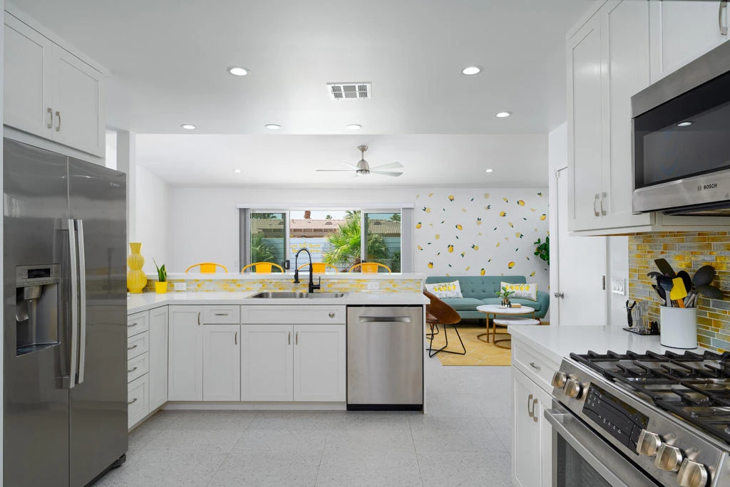 Located in Desert Park Estates, this beautifully updated 3-bedroom, 2-bath mid-century home is available for long-term lease only and is designed with entertaining in mind. Offered fully furnished with a stylish mid-century modern vibe, the home is turn-key just pack your toothbrush and flip-flops. The kitchen comes stocked with stainless steel appliances, microwave, coffee maker, toaster, and a full-size washer and dryer for your convenience. Step outside to your private desert retreat featuring a south-facing oversized pool and spa, built-in BBQ, fire pit, and multiple lounging and dining areas perfect for hosting friends or relaxing under the stars. (Please note: some outdoor furnishings shown in photos have been removed.) Rent includes WiFi, trash service, landscaping, and pool maintenance. Tenant is responsible for water, gas, electric, and cable. One small dog may be considered with owner approval and a $500 deposit.
