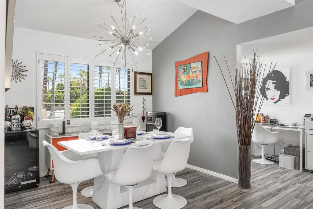 Tucked inside one of South Palm Springs’ most desirable single-level communities, this rare Kaptur home lives like a private Palm Springs retreat, with no one above or below you and private patio spaces that create true indoor-outdoor flow. From the moment you enter, the home feels intentional and design-forward. Natural light pours through plantation shutters, reflecting off modern finishes and clean architectural lines. The living and dining areas flow effortlessly, making the space feel open, social, and relaxed, exactly how a Palm Springs home should live. The primary suite is calm and inviting, with a spa-inspired bath that keeps the aesthetic clean and timeless. The secondary bedroom adds personality and flexibility, perfect for guests, a creative studio, or a home office. The outdoor spaces are where this home truly shines. Designed for both relaxation and entertaining, they offer room for morning coffee, outdoor dining, and evening gatherings under the desert sky, all while enjoying privacy and the surrounding palms. Just steps away, resort-style pools, lush grounds, and mountain views complete the Palm Springs lifestyle. Whether you are looking for a full-time home, a weekend escape, or a stylish desert base, this is the kind of property that rarely becomes available. Single-level living. South Palm Springs. Designed by Hugh Kaptur. This is the one buyers wait for.