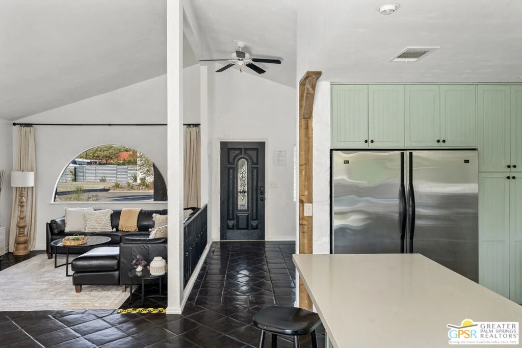 YOUR TURNKEY PALM SPRINGS RETREAT. Sold fully furnished, this Spanish Modern masterpiece offers an effortless transition into the desert lifestyle. From the high-end Wolf appliances to the poolside loungers, everything is included. Ideally positioned on a private corner lot, this meticulously maintained residence features a spectacular backyard retreat with a newly updated pool, sun deck, pergola, and custom water features all perfectly framed by sweeping, unobstructed San Jacinto Mountain views. CHEF'S CULINARY SHOWPIECE: The kitchen is anchored by a WOLF commercial-grade gas range (6 burners, griddle, double ovens), high-end hood, and a massive commercial side-by-side refrigerator/freezer. CLIMATE & EFFICIENCY UPGRADES: Move in with peace of mind thanks to a BRAND NEW A/C system, energy-efficient evaporative cooler (for significantly lower utility costs), new water heater, and updated lighting.The light-filled floor plan features high ceilings, elegant Spanish tile, and a flexible bonus area perfect for a home office or creative studio. The primary suite offers direct pool access and a spacious walk-in closet, while two additional bedrooms are thoughtfully furnished for guests or high-performing vacation rental use. Minutes from downtown dining and world-class amenities. OFFERED FULLY FURNISHED and ready for immediate enjoyment.