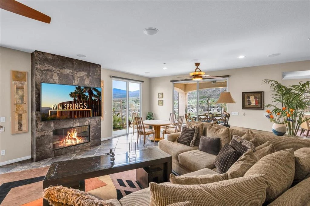 Ideally located in the ''Canyon Heights'' community in South Palm Springs, this 2 story home offers unsurpassed, sweeping vistas of The San Jacinto Mountains and the Oswit Canyon Land Preserve. With 3 bedrooms, 3 baths and 2873 square feet of living space this floor plan offers both privacy and excellent space for gatherings and entertaining. The main level features a generous living and dining area with a fireplace, a wet bar and a spacious patio all with jaw dropping views. The kitchen is open to both the dining area and the den/office. With expansive granite countertops/ breakfast bar, handsome cabinets, double ovens and dual sinks, it sets the stage for any chef to create! The entire second floor of the home is the primary bedroom with a separate cozy reading area, spacious primary bath with soaking tub, double bowl sink, abundant closet space and another private patio with endless views. For additional privacy, the third bedroom is designed as a Casita with its own bath and entry immediately off the courtyard. Additionally, this home offers a separate room for the washer/ dryer, abundant customized storage and shelving, a wet bar with beverage cooler, 2 fireplaces, custom motorized shades, dual zoned heating & cooling and a 2 car garage. This home sits in one of the most coveted locations in the entire community with no immediate neighbor to the South or East, just beautiful desert landscaping with mesmerizing views. Enjoy being steps from your private entrance to the South Lykken Trail, a hikers dream! Canyon Heights is a gated community offering tremendous amenities including 4 pools, 4 Spas, 2 tennis courts, 6 Pickle Ball courts ( all recently refinished!) a Clubhouse, a fitness room and a fruit orchard. There are 2 public championship golf courses out the door. Minutes to downtown Palm Springs dining and sites. All this on FEE LAND ( NO LEASE!) It is truly a pleasure to show this home!
