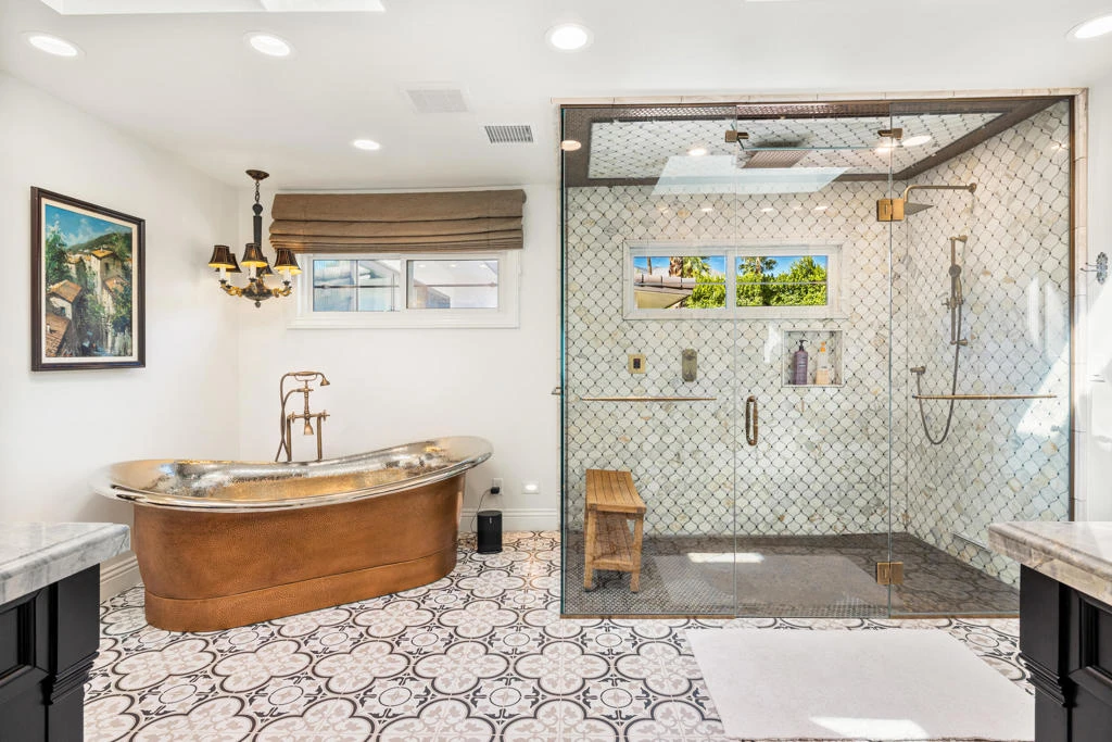 Casa Suenos - An Architectural Masterpiece in South Palm Springs. Tucked away in the exclusive enclave of Andreas Hills, Casa Suenos is a private sanctuary where timeless elegance meets elevated design. Surrounded by mountains, the estate is bathed in sunshine, sheltered from the wind, and framed by awe-inspiring 360 views. This remarkable location offers the ultimate setting for enjoying the Palm Springs lifestyle, just moments from world-class hiking, premier golf, and vibrant downtown dining and shopping. Reimagined and completely rebuilt just three years ago, this 5,417 sq. ft. custom estate is a meticulously curated Spanish Colonial masterpiece infused with romantic Moroccan and French influences. Every finish, texture, and detail has been intentionally selected to create a cohesive vision of escape, romance, and refined beauty. Designed as your own personal resort, the property features a sparkling pool with cascading waterfall, tranquil fountains, citrus gardens, and multiple lounge areas set against dramatic mountain vistas. Pocketing sliding doors create seamless indoor-outdoor living, opening to a spectacular front-loaded pool and spa, a Spanish-tiled outdoor fireplace, a fully equipped al fresco kitchen, and a raised patio that captures what may be the most breathtaking mountain views in the entire Coachella Valley. The estate offers 4 luxurious en suite bedrooms plus a fully appointed detached casita with its own kitchen, living room, and laundry, perfect for extended family, guests, or private retreats. Grand living spaces are anchored by soaring vaulted wood-beamed ceilings, artisan tilework, bespoke cabinetry, and a handcrafted dark wood tequila bar--hallmarks of true craftsmanship. Blending elegance with comfort, the primary suite offers a romantic escape infused with warmth and style, complete with a spa-like bath, dual walk-in closets, and a private office for quiet retreat or stylish remote work. Each guest suite has been thoughtfully designed with en suite baths and elevated finishes to welcome visitors with the most refined taste. Casa Suenos is more than a residence, it's a timeless expression of romance and elegance, seamlessly intertwined with the sophistication of Palm Springs living. Welcome home to Casa Suenos.