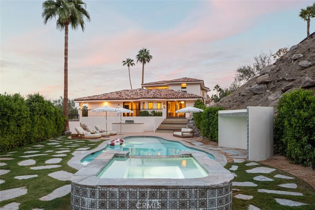 Nestled in the highly sought-after Mesa neighborhood, this stunning 6-bedroom, 5.5-bathroom estate offers a luxurious living experience with breathtaking views of the San Jacinto Mountains. Set in the serene foothills of Palm Springs, the property provides privacy and exclusivity, all while being conveniently close to downtown's vibrant dining, shopping, and entertainment. The Mesa, renowned for its historic charm and celebrity residents, combines tranquility with modern-day convenience. Spanning over 5,100 square feet, this grand home has undergone a meticulous 2.5-year remodel, resulting in a beautifully modernized interior. The remodel includes high-end wood cabinetry, Taj Mahal quartzite countertops, and premium fixtures throughout. Expansive living areas are enhanced by Fleetwood sliders and new windows, seamlessly connecting the interior to the outdoors, where a private pool and spacious backyard await. The thoughtfully designed layout features a formal dining room, a spacious family room, and a luxurious master suite complete with an impressive master bathroom. A custom wine room adds an elegant touch, perfect for entertaining or showcasing your collection. Additional upgrades include a new roof, HVAC systems, upgraded bathrooms, and a newly paved driveway with custom walls and gates. This home is designed for comfort and style, with oversized bedrooms and bathrooms, an attached 2-car garage, and an additional carport. Whether relaxing by the pool, hosting in the formal dining area, or taking in the picturesque mountain views, this property offers a perfect blend of elegance and practicality. Don’t miss this rare opportunity to own a meticulously remodeled estate in one of Palm Springs’ most desirable neighborhoods.
