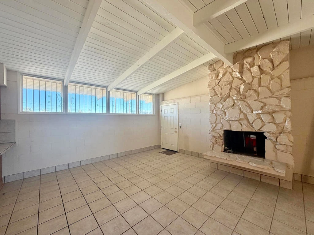 MID-CENTURY FIXER | FIX AND SAVE WITH FHA203K LOAN | NO HOA | FEE LAND (No Land Lease)! Bring your vision and unlock the potential of this classic mid-century home located in the Desert Highland Gateway area of North Palm Springs. With strong architectural features and a generous lot, and incredible MOUNTAIN VIEWS, this property offers an exceptional value-add opportunity for owner occupied home Buyers. The home features vaulted wood-beamed ceilings, a dramatic floor-to-ceiling rock fireplace, and tiled flooring in the main living areas that reflect its authentic mid-century character. Two bedrooms both offer vaulted ceilings, complemented by a full bathroom. The gated concrete driveway leads to a covered carport with storage and laundry hookups, adding functional convenience. Step outside to a covered rear patio with stunning western mountain views, opening to a large block-walled yard with endless possibilities--ideal for a future pool, ADU, garden retreat, or expansive outdoor entertaining space. The property is equipped with a central HVAC system plus an additional split AC unit in the living room. Seller will cooperate with FHA203K Loan, and possibly pay some closing costs! Opportunity to get great starter home and fix the cosmetic repairs needs with the first mortgage. A rare opportunity to invest in a no-HOA, fee-land property in North Palm Springs with strong upside potential.