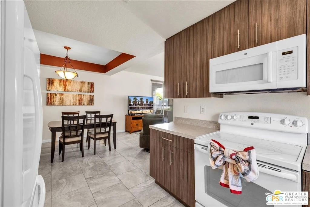 Look no further! This turnkey furnished condo is tucked into a desirable interior location within the sought-after La Palme community, offering the perfect blend of comfort, style, and resort living. Inside, you'll find two spacious primary suites large enough for a king bed, tile flooring in the main living areas, ceiling fans, and custom window treatments. The remodeled kitchen is both elegant and functional, featuring cabinetry that extends to the ceiling and a charming window over the sink with tranquil pool views. The primary bath offers dual vanity and remodeled walk-in shower. The living room and one of the bedrooms open to an expansive enclosed covered patio, fully tiled and ideal for relaxing or entertaining. Additional features include indoor laundry and assigned covered parking for convenience. La Palme residents enjoy a resort lifestyle with six sparkling pools and spas, three tennis courts, lush landscaping, and two EV charging stations. HOA dues include roof, water, trash, Wi-Fi, and basic cable with HBO making ownership truly effortless. This is also a non-smoking community. All of this is just minutes from downtown Palm Springs, the Convention Center, Palm Springs Airport, and Spa Casino, putting the best of the desert right at your doorstep. Come experience the best of Palm Springs living at La Palme!