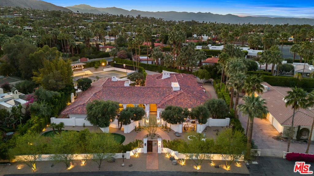 In the heart of the ultra-coveted Old Las Palmas community in Palm Springs, this newly transformed, elegantly crafted estate presents resort-style amenities, contemporary sophistication, unparalleled desert views and authentic Palm Springs lifestyle. Spanning over 7000 square feet, the property offers seven bedrooms and six bathrooms, meticulously designed to optimize entertainment areas while strategically placing living quarters to seamlessly blend indoor and outdoor living. Situated on nearly one acre, the property extends from street to street, boasting both gated and walled features, ensuring unparalleled privacy and security. Entering through the main front gate, the property's elegant approach showcases the tasteful design that is accentuated throughout the home. The large open-concept great room with vaulted wood beam ceilings seamlessly blends living and dining spaces into one cohesive and inviting environment ideal for entertaining. Complemented by a full bar, wine wall, cozy fireplace, and large indoor/outdoor sliding glass doors, the space has been thoughtfully curated to host and entertain with effortless style accentuated by stunning desert vistas. The large kitchen with its statement island, breakfast bar seating and banquet-style dining space further highlight the property's refined style. Adjacent to the kitchen, find an intimate den space for more casual living. Entering the primary suite, enjoy an ideal space for relaxation featuring direct access to the pool area, exposed wood beam ceiling, and focal fireplace that instill a sense of tranquility. The primary ensuite with dual vanities, a free-standing tub, a large steam shower, a coffee bar and ample closet space, frame a luxurious experience. The additional bedrooms, many of which feature direct outdoor access, provide guests with ultimate comfort and convenience. Outdoors, the backyard space is complete with a large pool and spa, accompanied by a full-size tennis/pickleball court (resurfaced) with viewing steps and an expansive outdoor bar and kitchen. Additionally, discover a bocce ball court, several inviting seating areas, an ambient outdoor fire pit, a well-maintained putting green and a four car garage. Located in one of the most sought-after enclaves in Palm Springs, 460 W Vereda Norte is the pinnacle of luxury desert living, with sensational mountain views offering an unparalleled blend of sophistication, style, and exclusivity.