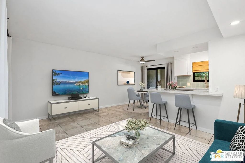 Ground-floor condo in the Palm Springs Golf And Tennis Club offering strong rental and lifestyle appeal in South Palm Springs. This 1 bedroom + bonus area, 2 bath unit features approx. 705 sq ft, no stairs, and convenient patio laundry. Pool-view location just steps from the pool, spas, and tennis courtsan ideal setup for seasonal renters and full-time use alike. Recent updates include fresh interior paint, new window coverings, and a refreshed kitchen with quartz countertops and newer KitchenAid appliances. The flexible bonus area includes a Murphy bed and works perfectly as a guest room, TV lounge, or remote work space, adding valuable sleeping and rental versatility. Community amenities include 3 pools, 4 spas, and 4 tennis courts, with approx. 205 units total. HOA dues of $529/month commonly include water, sewer, trash, cable TV, internet, and exterior maintenancekeeping ownership costs predictable. Located adjacent to the public Tahquitz Creek Golf Resort with two 18-hole courses. Ideal for seasonal rental, long-term hold, or personal desert getaway.