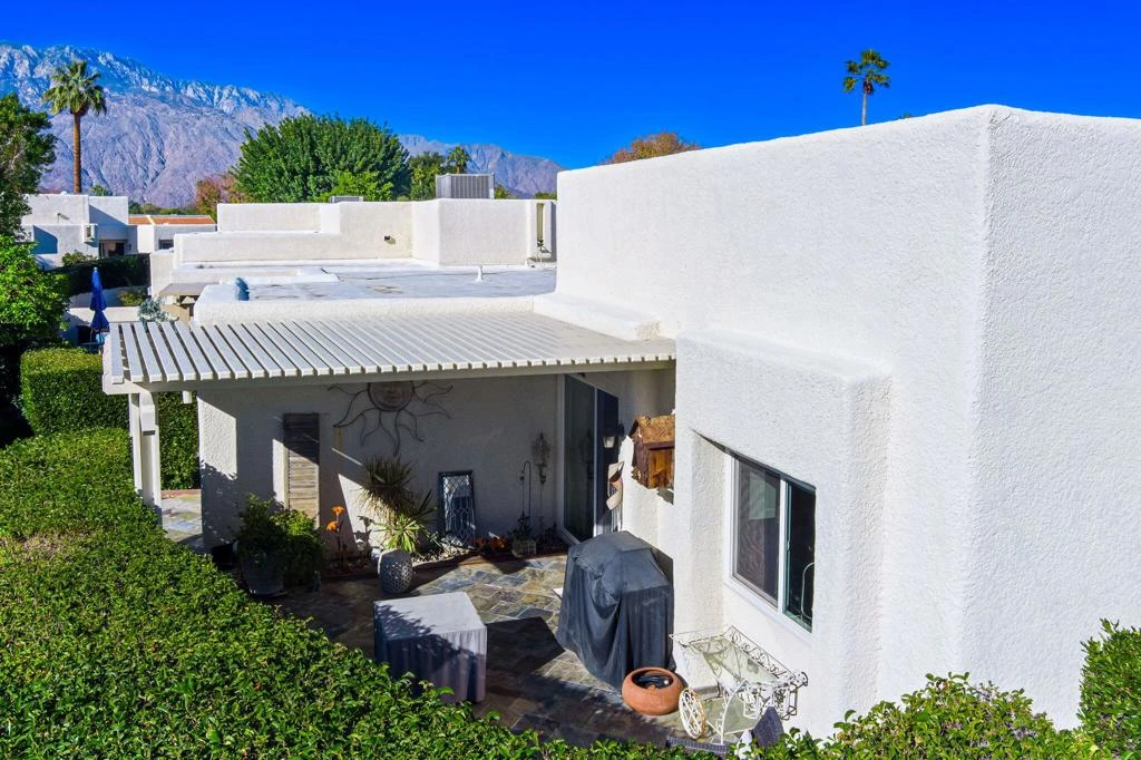 MOVE-IN SPECIAL: 1/2 month free rent with 12 month lease and available furnished or unfurnished. Experience refined desert living in this sophisticated residence within The Fairways, a premier gated enclave in Palm Springs. Spanning 1,168 square feet, this two-bedroom, two-bathroom home seamlessly blends interior comfort with the quintessential outdoor lifestyle of the Coachella Valley. The thoughtfully designed floor plan bathes the interior in natural light. An expansive living and dining area serves as the heart of the home, offering views of the surrounding mountains and manicured greenery. These views extend effortlessly to a private, oversized patio, perfect for al fresco entertaining. Positioned on a desirable corner lot, the property includes a detached one-car garage and an attached carport, providing ample space for a second vehicle or a golf cart. The primary suite offers a spacious retreat with an ensuite bath, while the secondary guest bedroom is positioned for maximum privacy. Convenience is further enhanced by a washer & dryer in the garage. You will enjoy access to 8 heated pools, pickleball courts, tennis courts, and ping pong. Golf is located directly across at Tahquitz Creek Golf Resort, featuring two championship 18-hole courses and a full driving range. Just minutes from the dining and boutiques of Downtown Palm Springs and steps away from the CV Link for hiking, cycling, and low-speed electric vehicle transit.