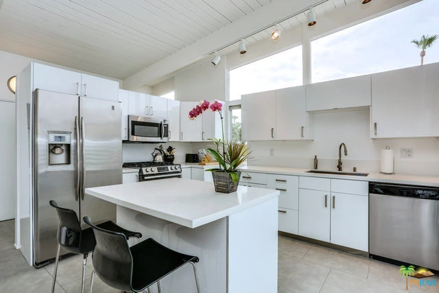 Vacation Rental. Minimum 4 night rental minimum. PS ID # 2795. Posted rate is monthly, good thru Sept 2024.This stunning William Krisel-designed home, built by Alexander & Co in 1959, has been beautifully remodeled while preserving its mid-century charm. The original open carport, sweeping rooflines, and panoramic clerestory windows remain intact, alongside the restored boomerang-shaped pool, now enhanced with an integrated spa and sweeping mountain views.Step back in time with original 'Lava' lamps and authentic mid-century furnishings, while enjoying modern conveniences like free WiFi, hidden solar panels, and contemporary appliances. Relax by the fire pit, play bocce ball, or fire up the gas grill and sing your favorite rock-n-roll tunes by the pool.Rates:June-Sept: $319/ntOct & Nov: $499/ntDec: $599/ntJan-April: $639/ntMay: $569/ntPool heating, utilities, and fees are included, plus tax. An $800 refundable security deposit is required. Call the agent for availability