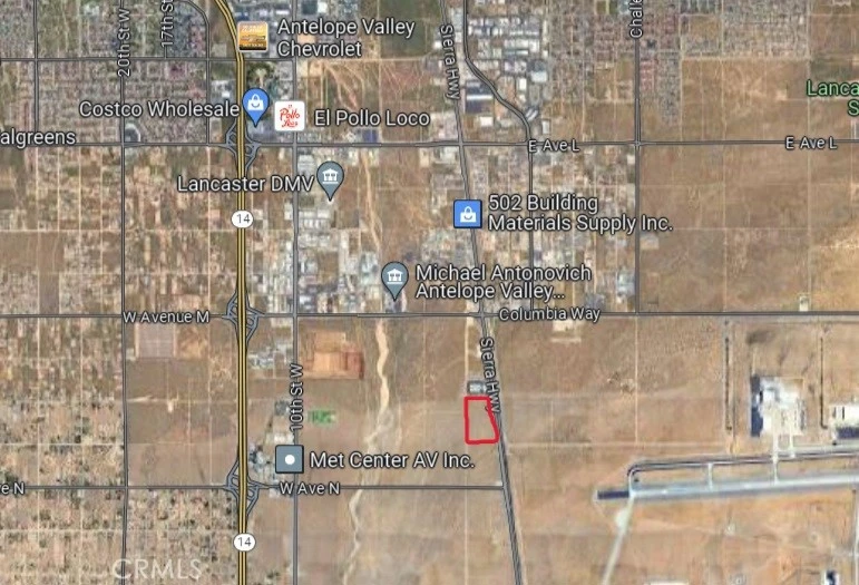 This expansive 14.45-acre flat land in the city of Palmdale lies along the Sierra Hwy Vic M8 offers a prime opportunity for development in an area zoned for Aerospace Industrial. The property’s versatile zoning, per the city planning's department, allows for a range of additional uses, making it ideal for various industrial, and commercial. Situated in a strategic location within Palmdale, this plot provides easy access to major transportation routes and is near by the growing community of downtown Lancaster, and Palmdale Regional Airport. Whether you are looking to establish a cutting-edge aerospace facility, a commercial enterprise, or explore other developmental possibilities, this property offers the flexibility and potential to meet your needs. Don't miss out on this unique opportunity to invest in a versatile and strategically located piece of land in Palmdale.