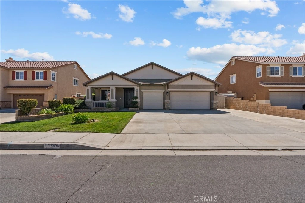Welcome to this beautifully maintained single-story home in desirable West Palmdale, built in 2003 and offering 4 bedrooms, 2 bathrooms, and approximately 2,278 sq. ft. of living space. Step into a formal living room featuring laminated wood flooring and high ceilings. The open-concept kitchen is designed for both function and style, showcasing granite countertops, a center island, and ample cabinetry, seamlessly flowing into the dining area and family room. The family room offers a cozy fireplace, perfect for relaxing or entertaining. The spacious primary suite offers a private retreat with a soaking tub, dual sinks, and a walk-in closet. Additional highlights include central A/C and heating, an indoor laundry area, and generous natural light throughout. Enjoy a private backyard with a covered patio—ideal for outdoor dining and gatherings. The property also features a 3 car garage and a large driveway for added convenience. Located near shopping centers with easy access to the 14 Freeway, this home combines comfort, space, and a prime location.