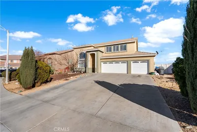 Located in one of the most sought after neighborhoods of West Palmdale, this 6 bedroom, 3 bathroom, 2 story home offers 3126 sq.ft of living space and is ideal for those looking for resort style living at an affordable price range. This beautifully maintained property is highlighted with showers of natural light, custom wood kitchen cabinetry, stainless steel appliances, granite counter tops, island, separate dining and living areas, 3 car garage, solar panels, dual-zone AC system, 2 fireplaces and many more. The home features high ceilings along with new recessed lighting and laminate flooring. Adjacent to the open kitchen and with easy access to the backyard, the spacious family room with fireplace is perfect for gatherings. While most bedrooms are upstairs, the home offers a private bedroom downstairs for extra convenience. The upstairs boasts 5 bedrooms with an expanded primary suite along with a private balcony and a cozy fireplace. The backyard oasis offers a covered patio, crystal-clear heated pool and spa with automatic cover, in ground trampoline, built in BBQ and gas fire pit. The beautiful combination of concrete side yards and artificial grass makes the outdoors almost maintenance free. The living space and floor plan is both sophisticated and functional designed to maximizes the connection between the inside and outside of the property. Situated at close proximity to major freeways, shops and restaurants, this spectacular property will take the concept of comfort and relaxation to the next level.