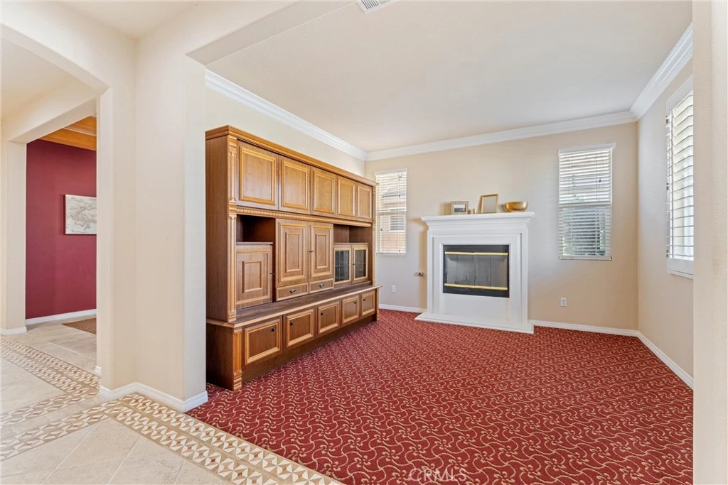 Experience luxury golf course living at its finest in Rancho Vista. This stunning former model home is perfectly situated in the prestigious Palmdale West community. This expansive single-story residence features three oversized bedrooms, three bathrooms, and a versatile bonus room that can easily be converted into a fourth or even a fifth bedroom. From the elegant travertine-tiled foyer to the designer wood ceilings in the formal dining room, every detail exudes sophistication. The home includes rich wood flooring and three separate fireplaces for unparalleled ambiance. The gourmet chef’s kitchen is equipped with a massive central island, a butler's pantry, and double ovens. The primary suite serves as a true sanctuary, featuring its own fireplace, a retreat area with custom built-ins, and a spa-like bath with a soaking tub and walk-in shower. Key upgrades include a newer AC condenser, gutters, and custom aluminum exterior security shutters for golf ball protection. A three-car tandem garage provides ample space for vehicles or a workshop. Seller will consider all offers, including those that include concessions.