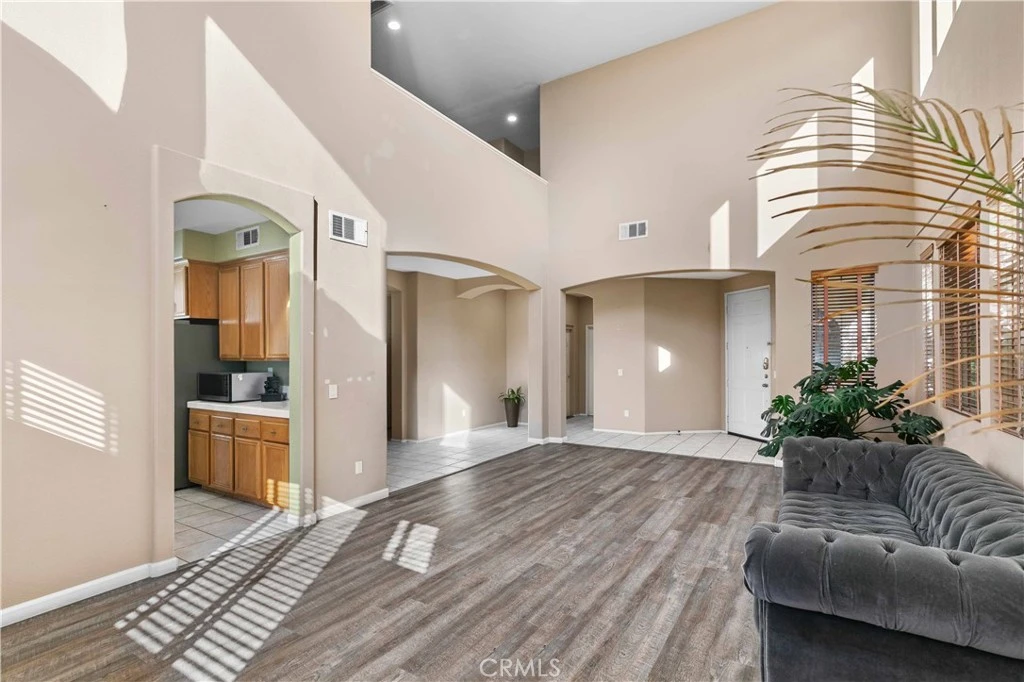 Located in the desirable Rancho Vista community of West Palmdale, this beautiful 5-bedroom, 3-bath home offers 3,256 sq ft of living space on an expansive 11,817 sq ft lot. The bright entry opens to a formal living and dining area with soaring ceilings and abundant natural light. The well-designed floor plan includes a downstairs bedroom and full bath perfect for guests or multi-generational living. The spacious kitchen offers ample cabinetry and opens to a large family room with a fireplace, overlooking the backyard and pool. Upstairs features four generously sized bedrooms, including a primary suite with dual walk-in closets and a primary bath with a soaking tub, separate shower, dual sinks, and a dedicated makeup/dressing area. The entertainer’s backyard includes a pool and spa, covered patio, fire pit, garden area, and basketball court. Solar panels provide energy efficiency, and the home is conveniently located near the Antelope Valley Mall, shopping, dining, parks, and Rancho Vista Golf Club—making this a rare opportunity in one of West Palmdale’s most sought-after communities.