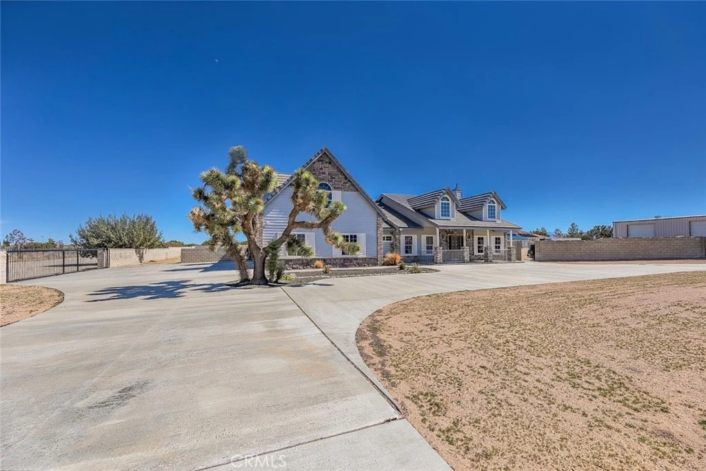 This turnkey West Palmdale estate offers exceptional space, functionality, and versatility and will not last long. The residence spans approximately 3,200 square feet and features four bedrooms and three bathrooms, with three bedrooms conveniently located on the main level and one bedroom upstairs accompanied by a spacious loft, ideal for a home office, media room, or additional living space. The home showcases numerous high-quality features, including hardwood kitchen cabinetry, wood-look tile flooring, exposed wood beams, recessed lighting, and a dedicated laundry room with additional storage cabinetry. The generously sized bedrooms are equipped with built-in closet organizers, while the primary suite offers a spa-like bathroom with a soaking tub and relaxing window views. Situated on 2.5 acres, the property is perfectly suited for horse enthusiasts, offering a 6-stall barn, hay storage area, and a tack room. Additionally, the property includes a permitted 4,000-square-foot insulated building featuring three 14-foot RV doors, ideal for parking multiple RVs, operating a business, or storing recreational vehicles and equipment. The 4,000-square-foot warehouse will be included in the listed price.