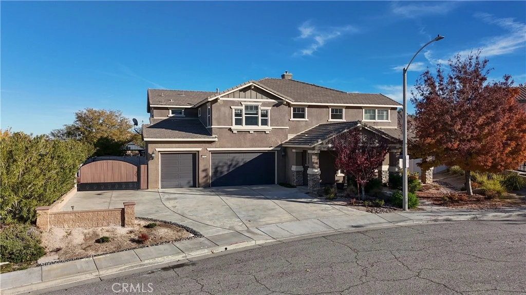Welcome to this stunning and spacious West Palmdale home offering nearly 4,000 sq ft of living space on a generous 0.33-acre lot. Designed for comfort and flexibility, this 5-bed, 4-bath property features high ceilings, large energy-efficient windows, and a dedicated office ideal for remote work. The spacious loft can serve as an optional 6th bedroom, bonus room, or media space, while the primary suite offers two walk-in closets. Enjoy pre-wired surround sound, ample storage under the stairs, and fully paid solar panels with dual HVAC systems for energy efficiency. Outdoor highlights include professionally landscaped yards, sprinkler systems, patio, pool-sized backyard, vegetable garden, and a gazebo pre-wired for spa installation. Gated RV parking, security alarm, and outdoor cameras provide added convenience and peace of mind. A rare blend of space, comfort, and lifestyle upgrades—don’t miss this exceptional home!