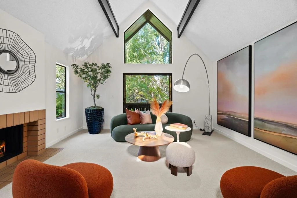 The lush, private Barron Square complex provides a peaceful setting for this bright and spacious 2-bedroom condo with a desirable top-floor location. Soaring ceilings and abundant natural light enhance more than 1,400 square feet of interiors, recently refreshed with new paint and carpeting. Highlights include inviting living areas, a practical kitchen, in-unit laundry, a fireplace, storage, and a convenient garage. Outdoor spaces extend the living environment, while community amenities feature a pool, sauna, tennis court, and clubhouse. Just minutes from The Village at San Antonio Center, with parks nearby and excellent commute options within easy reach, this home is also walking or biking distance to acclaimed schools including Briones Elementary, Fletcher Middle, and Gunn High (buyer to verify eligibility).