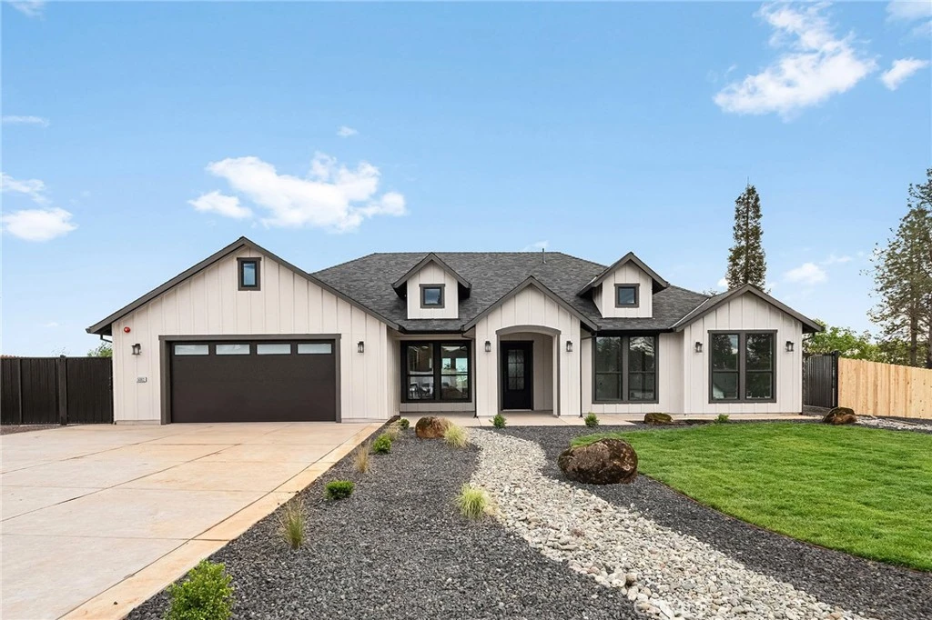 Beautiful new home with stylish upgraded finishes, positioned on a premium lot in a desirable East Paradise neighborhood near Lime Saddle Marina. The interior features black windows, vaulted ceilings, and a gas fireplace with rock surround that anchors the living space. The kitchen is thoughtfully designed with KitchenAid appliances, a prep-space pantry, and modern finishes. A split-bedroom floor plan provides privacy, while the primary suite includes upgraded lighting in the bathroom and walk-in closet. The backyard has been fully landscaped to match the finished front yard, creating a cohesive and move-in-ready outdoor space.
