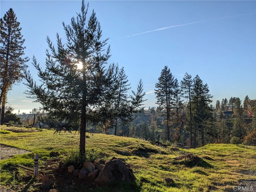 Discover a great opportunity on the east side of Paradise—an affordable **0.68-acre lot with sweeping views** across the valley and toward the coastal range. Sunsets here are something special. The property previously held a 3-bedroom, 2-bath, 2,368 sq. ft. home. **Water service has been maintained**, making the path to rebuilding smoother and less expensive. Set back on a classic flag-lot layout, it offers a tucked-away feel and excellent privacy. Partial boundary surveys have been completed by adjoining property owners. This is a well-loved Paradise neighborhood and a wonderful setting for anyone looking to create a custom home with a view. This neighborhood is rebuilding for a reason - it is a great place to call home!
