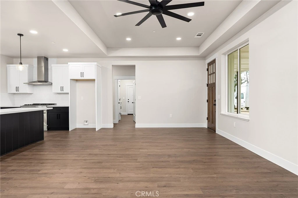 Step into this beautifully designed 3-bedroom + office, 2-bath modern farmhouse and experience the perfect blend of spaciousness, style, and comfort. From the moment you pull up, you'll notice the bright white exterior with striking black and dark wood accents, complemented by a professionally landscaped backyard that sets the tone for this inviting home. Inside, the open floorplan showcases dark wood floors and a stunning black-and-white kitchen, complete with an L-shaped island ideal for entertaining, a Z-Line 6-burner stove, and a corner walk-in pantry for all your culinary needs. The split floorplan ensures privacy, while the spacious bedrooms offer a cozy retreat at the end of the day. The additional versatile room sits right off the main living area and can be customized as a den, playroom, formal dining space, homeschool room, gym, or even converted into a 4th bedroom—the possibilities are endless. Step outside to the fully fenced backyard, a blank canvas ready for gardens, a play area, or outdoor entertaining. The covered back patio extends your living space, creating a seamless indoor/outdoor experience. Located on Madrone, a newly developed street of high-quality stick-built homes, this neighborhood offers a strong sense of community and confidence in your investment. Built by local builder American Dream Construction, known for exceptional craftsmanship, this home includes an 18-month fit & finish warranty (standard is a 12-month). Built by American Dream Construction—one of the few builders in Paradise committed to true wildfire preparedness. These homes feature 5 feet of defensible space with non-combustible materials, Class A fire-rated roofing, ember-resistant Vulcan vents, fiber cement siding, and non-combustible gutters and downspouts. Plus status upgrades include enclosed eaves and soffits, metal gutter guards, dual-pane tempered windows, and fire-resistant exterior doors—offering unmatched protection, quality, and confidence. Spacious, stylish, and thoughtfully designed, 722 Madrone combines modern farmhouse charm with practical living—an ideal place to call home.