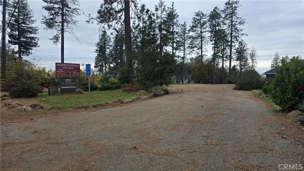 PRIME LOCATION for this .99-ACRE COMMERCIAL LOT in Paradise! New Septic System (tank & leach field) installed in 2014, then re-inspected and passed in April of 2023. The Paradise Irrigation District water connection fee has been maintained and is ready for you to reconnect without the high cost of a new connection. Both of these are big money savers for the new owner!! Discover endless possibilities with this .99-acre parcel zoned C.C. (Community Commercial) in the heart of Paradise! Previously home to a well-established local veterinarian’s office since 2013, this property offers a prime location, excellent visibility, and incredible flexibility for future development. This property offers 117 feet of Skyway frontage on the main highway, providing exceptional traffic exposure and visibility for your business. The 2,478 sq. ft. building was lost in the Camp Fire, but much of the infrastructure remains intact, including lovely mature landscaping, numerous trees, and a well-maintained circle asphalt driveway and parking lot still in good condition. Zoned Community Commercial (C.C.), the lot allows for a wide range of potential uses—such as retail, offices, restaurants, service businesses, storage, hotels or motels, and even multi-family residential housing (with Town approval). According to the Town of Paradise, the Community Commercial zone accommodates a full spectrum of locally and regionally oriented commercial land uses. Depending on constraints and approvals by the Town of Paradise, residential densities may reach up to 10 dwelling units per acre. Enjoy beautiful canyon views to the back of the property and stunning Sawmill Peak mountain range views to the front. There’s also a small driveway providing access to two additional terraced areas located behind the former main parking lot and business site—ideal for additional structures, storage, or expanded parking. For complete zoning definitions and permitted uses (identified as “P,” “C,” “S,” or “A” depending on approval type), please visit the Town of Paradise zoning information page: WWW.TOWNOFPARADISEMAPPING.COM This is your opportunity to bring new life to a fantastic commercial property in a thriving, rebuilding community — imagine the possibilities!