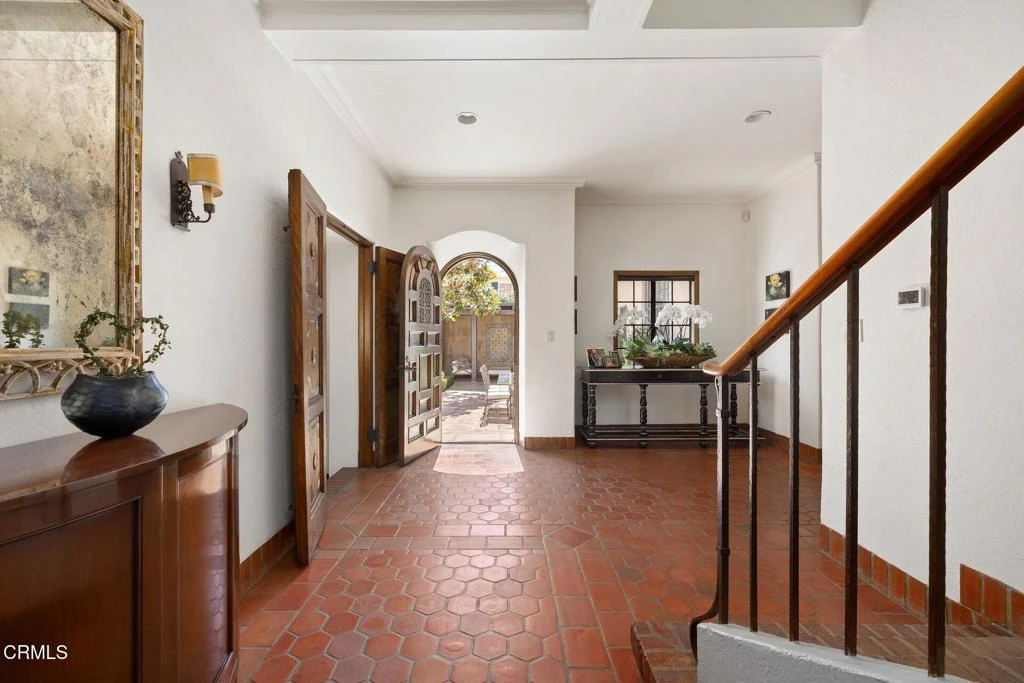 Designed in 1924 by renowned architect Roland E. Coate of the distinguished firm Johnson, Kaufmann and Coate, this exceptional 5-bedroom, 6-bath Spanish Colonial Revival estate is located on desirable Hillcrest Avenue in Pasadena's prestigious Langham estate district near the iconic Langham Huntington Hotel. Thoughtfully restored and meticulously maintained, the residence blends historic architectural character with modern comfort.A classic Saltillo-tile entry introduces a gracious, well-balanced floor plan. The impressive living room features dramatic ceiling heights, a stately fireplace, and custom doors opening to the home's signature central courtyard--an enchanting outdoor living space that serves as a natural extension of the residence. With its covered patio, fountain, and generous dining area, the courtyard is ideal for intimate evenings and elegant entertaining. Opposite the living room, a handsome library with a fireplace and a nearby powder room offers a refined retreat.The formal dining room, with floor-to-ceiling windows, a fireplace, and Saltillo tile flooring, opens to the courtyard and connects seamlessly to a spectacular gourmet kitchen designed for gathering and everyday living. Featuring a vaulted ceiling, a large center island, abundant cabinetry and counter space, a breakfast area, and an adjoining family room, the kitchen forms the heart of the home. An adjacent bedroom and three-quarter bath provide flexible space for guests, office, or staff. Just beyond, the private outdoor retreat offers a lap pool, spa, fireplace, and outdoor kitchen.Upstairs, the primary suite offers a serene escape with a fireplace, light-filled architectural windows, a spacious walk-in closet, and an elegant bath with dual sinks, a soaking tub, and an oversized shower. Three additional bedrooms--one ensuite and another with its own fireplace--along with an additional bath, complete the second level.The lower level includes a home gym, media room, flexible guest quarters or office, three-quarter bath, and storage.Throughout the residence, Coate's architectural brilliance is evident in the grand proportions, soaring ceilings, elegant arches, custom doors and windows, decorative metalwork, hardwood and hexagonal terra-cotta tile floors, and multiple fireplaces.A gated three-car garage and proximity to Pasadena's shopping, cultural institutions, and major freeways complete this rare offering in one of the city's most coveted neighborhoods.