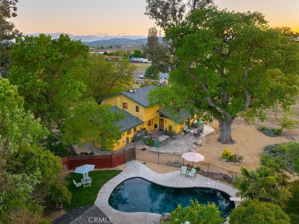 Experience country living just seven minutes from downtown Paso. Set in the Estrella District of the Paso Robles, this 7.56± acre estate offers a rare blend of privacy, potential, and laid-back luxury. A scenic driveway leads to the spacious 2,843± sq. ft. residence where you'll find a light-filled layout with three upstairs bedrooms, 2.5 bathrooms, a dedicated office/den, formal living room, wine cellar, and more. The open-concept kitchen, dining, and living areas flow seamlessly into a resort-style backyard retreat featuring a granite flagstone patio, built-in outdoor kitchen, spa, and pool with slide—ideal for entertaining or everyday enjoyment. Framed by mature landscaping, the outdoor space is anchored by a striking grandfather oak. The home’s classic structure offers room to refresh and personalize, making it an inviting canvas for your vision. The detached 2-car garage with bonus room provides added flexibility, while a two-stall stable makes the property equestrian-friendly, with direct access to miles of nearby riding trails. Additional infrastructure includes a 23 GPM well, certified septic system, and solar tracking panels. Located in the county outside city limits, the estate also qualifies for short-term rental use, unlocking even more revenue potential. Perfect for lifestyle buyers that enjoy a scenic setting. This is your gateway to Paso Robles wine country living.
