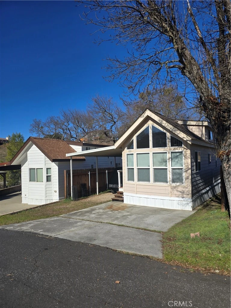 Lake Nacimiento Retreat – Your Perfect Lakeside Escape Nestled in the serene gated community of Heritage Ranch, this charming CAVCO modular home offers the ideal lakeside getaway. Located on a peaceful cul-de-sac, this home combines comfort and convenience with a cozy, well-designed layout. Step inside to find a spacious bedroom with a large closet, built-in dresser, and plenty of counter space for added convenience. A loft area provides two single beds, perfect for guests or kids. The master bedroom features stunning views of a nearby stream and the surrounding mountains, creating a tranquil atmosphere. The kitchen is practical and functional, with ample cabinets and counter space for preparing meals. A dinette area provides a cozy space for dining, or you can use the counter area to place a couple of stools for casual meals. The kitchen flows seamlessly into the spacious living room, where sliding doors open to the outdoor space. Here, you'll find ample parking beneath a large carport—ideal for storing your boat, Polaris, or other recreational vehicles and an a concrete parking pad in front for your truck, cars and toys! New roof, toilet and garbage disposal. The property also offers additional parking and is conveniently located near community bathrooms, showers, and laundry facilities. Residents of Heritage Ranch enjoy a variety of amenities, including swimming pools, pickleball courts, an equestrian center, private launch ramp, campground and parks. Beyond the gates, you’ll have easy access to everyday essentials like Cappy Culver School, Oak Hill Market, dining options, and a gas station. Whether you're seeking a full-time home or a weekend retreat, this property allows you to experience the perfect balance of lakeside tranquility, outdoor recreation, and easy access to local attractions, including wineries within minutes and beaches—just 40 minutes away.