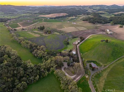 This exquisite 163.33 +/- acre, two parcel property is a gem nestled in the sought-after Paso Robles' Westside. Live Oak Vineyards graces the renowned Paso Robles Willow Creek AVA, surrounded by esteemed wineries and picturesque vineyards, presenting an unparalleled estate and vineyard prospect. The terrain is gently rolling, offering breathtaking panoramic views, while the 65.49 +/- acre vineyard consistently yields some of the region's finest wines. Comprising Chardonnay, Viognier, Cabernet Franc, Cabernet Sauvignon, and Petite Verdot, this vineyard is contracted with leading wineries on the Central Coast. The grandeur of the custom-built Main Home Estate unfolds with impeccable design and meticulous craftsmanship evident from the moment you step inside. Boasting 3,060 +/- sf, 2 bedrooms, 2 bathrooms, plus an office, this residence features an open and spacious floor plan with high open-beamed ceilings, wooden beams, ceramic tile, and hardwood flooring throughout. The chef's dream kitchen, complete with granite countertops, high-end appliances, a walk-around pantry, and a center island with bar seating, is ideal for entertaining. The living area, adorned with a beautiful wood-burning fireplace and built-in wood storage, creates a cozy ambiance on chilly evenings. The primary suite offers access to the back balcony, and the primary bathroom includes a walk-in closet, two vanities, a walk-in tile shower, and a wall gas stove. A covered breezeway leads from the kitchen to the 2-car garage, housing a finished, temperature-controlled wine storage room and a laundry room. The charming two-story barn-style guest house, built in 1981, spans 2,210 +/- sf with granite counters, wood cabinets, and hardwood flooring. The upper level comprises an open living area, kitchen, den, half bathroom, primary bedroom, and primary bathroom. Downstairs, the spacious garage area, utility room, half bathroom, and workroom provide additional functionality. Adjacent to the breezeway, guest quarters feature a living area, two bedrooms, and one three-quarter bathroom. A solar system covers both the main and guest homes and the domestic well, reducing energy costs. There are also 60 Arbequena Spanish Olive trees that produce great olive oil. Vineyards, mesmerizing views, a prime location, privacy, an estate home, a retreat—this property encapsulates it all. Seize the opportunity to own this extraordinary property today; it's a once-in-a-lifetime chance you won't want to miss!