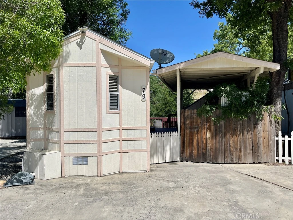 Adorable 1 bedroom home at Lake Nacimiento in a gated community known as Heritage Ranch. This is an affordable way to live the lake life ! The home is located at end of a cul-de-sac so no drive by traffic. There is additional parking for your family and friends just in front of home, or use it to leave your boat hooked up to your truck while here. The front carport use to host a big trailer and pontoon. Large area in front of carport room for truck/ side by side and/or golf cart, maybe all 3. Home is nestled back to open space with gorgeous majestic oaks, meadows, seasonal creek and mountains making it enjoyable year around. Both home and carport newly re-roofed and trim freshly painted. Fully fenced and gated not only offering privacy but keeps your furry ones in and unwanted critters out. Outdoor kitchen with stove/hot & cold water sink/refrigerator. Long bar top perfect for hosting buffets or extra seating. Put to use your bartending skills with the Cantina Couple storage sheds. Owners have one shed set up as kid's rec room or extra sleeping zone. Best of both worlds as this versatile exterior space with carport coverage could also be rearranged to host a large trailer and boat again. Many options come with this space but all options come with spectacular views and privacy! You will love the warm inviting interior with maple laminate flooring, light cabinets and high ceilings. An abundance of built in storage in main bedroom with double mirrored slider closets. Lovely kitchen with ample counter space, a plethora of cabinetry and small island.Standard size tub with shower. Open floor plan lends to many options with layout all with views. Another fun fact, is the outdoor shower great for quick cool downs on hot sunny days or hot showers after a cool morning hike. Hiking trailhead steps away.There is additional parking, laundry facilities and bathrooms close by. As an owner in Heritage you will enjoy; 2 swimming pools, pickleball courts, tennis courts, private boat launch and marina, hiking/ biking trails and so much more. Very active all age community with exciting events; music in the park, family movie nights, golf cart parades and more. Just outside the gates we have; 2 restaurants, hair/nail salon, gym, grocery store and a gas station complete with self cleaning RV/boat/ car station. We have a full service community including K-8 grade school and fire station. Hop in a golf cart and off you go!