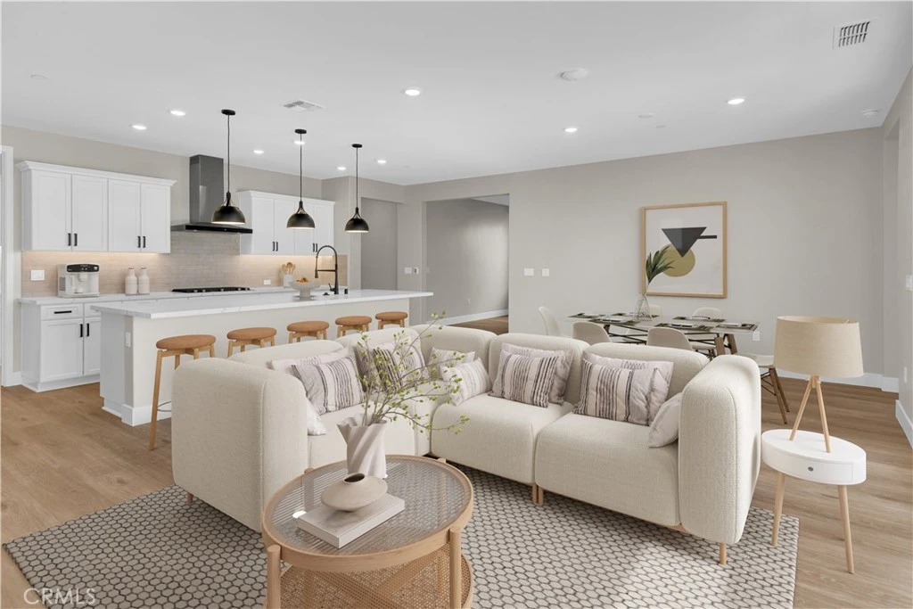 Welcome to Nevina, a 55+ community, where refined design meets the laid-back elegance of Paso Robles wine country. This thoughtfully crafted Connect II home features a gourmet kitchen with upgraded quartz countertops, a designer tile backsplash, premium KitchenAid stainless steel appliances, and classic Swiss Coffee painted cabinetry. The expansive great room seamlessly connects to the outdoors through a dramatic rolling wall of glass, leading to a covered patio with gas BBQ stub—ideal for both intimate evenings and lively gatherings. The primary suite offers a private retreat, highlighted by tall windows that fill the space with natural light and a spa-inspired bath with quartz counters, a tiled shower with frameless glass, and Shea Shower. Designer selections elevate every room, including luxury vinyl plank flooring throughout the main living areas and bedrooms, upgraded tile baths, two-tone interior paint, and 5½" baseboards. With an expanded laundry room complete with cabinetry and sink, bold black accents, and energy-efficient LED lighting, this move-in ready home blends function, comfort, and style in perfect balance. Nevina™—a Trilogy® Boutique Community™ offers more than a home—it’s a lifestyle. With an optional membership, residents can enjoy resort-caliber amenities, a planned vibrant clubhouse, and wellness-focused living. All of this is complemented by the vineyards, culinary delights, and natural beauty of Paso Robles—wine country living at its finest.