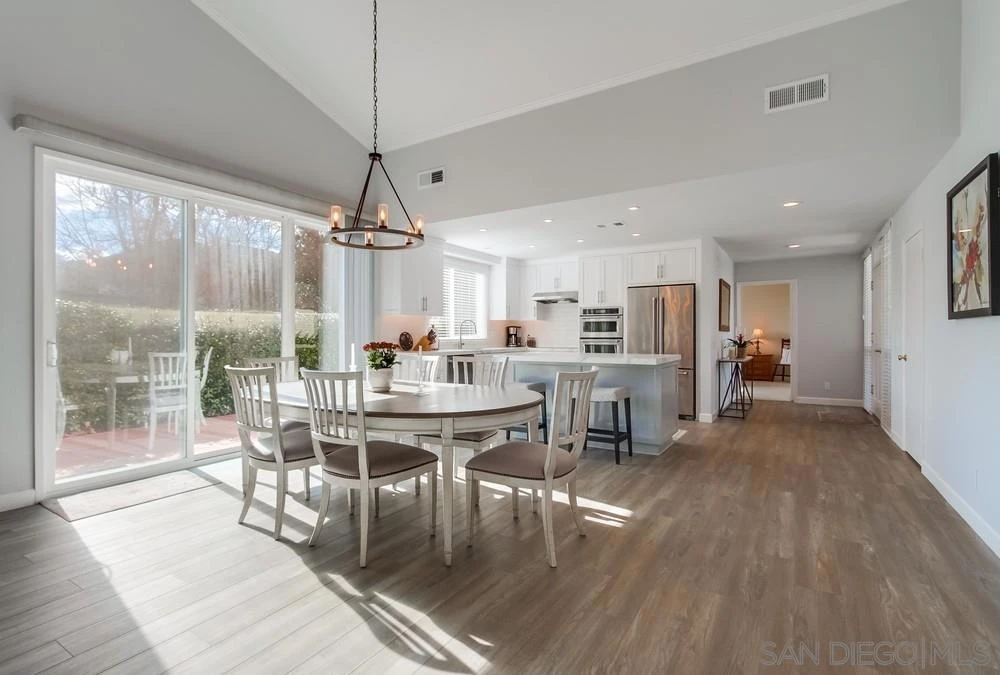 OUTSTANDING turnkey condo 150 yds from the Pauma Valley CC golf course. 3BR/3BA beautifully remodeled throughout. Very open floor plan with high end laminated wood flooring and carpeted bedrooms. Preferred end unit with lots of light. This extra patio off the kitchen and dining areas has a propane connection for the BBQ. Inside are Insulated cathedral ceilings with recessed lighting and ceiling fans in all rooms. Stainless steel kitchen appliances with quartz countertops and lots of storage in new cabinets.You'll love the island for prep and serving. A handy bar between the living and dining areas has a built-in wine cooler. Two of the ensuite baths have showers and the primary has a small tub/shower combo. The back patio has been enlarged overlooking the greenbelt, pool area, and Palomar mountains. Perfect place to watch the hills turn pink. New energy efficient heat/air system replaced a few months ago. Epoxy floor garage has room for 2 cars and a golf cart and a large closet for even more storage, Vetted memberships in the PVCC not included but available by contacting the PVCC office. All type of memberships available. Please come take a look. I think you'll love it. 3
