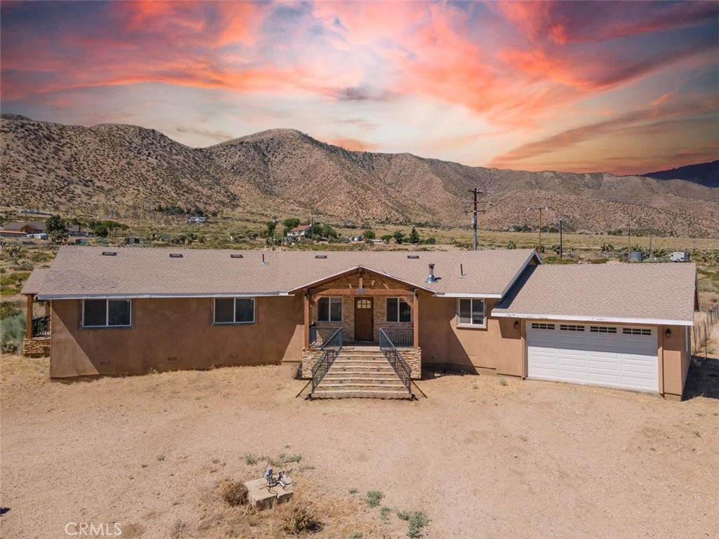 Welcome to Juniper Hills a stunning custom-built home nestled in the picturesque hills of Pearblossom. Constructed in 2020 and fully remodeled, this 4-bedroom, 3-bathroom residence offers 2,200 sq ft of luxurious living space on an expansive 2.51-acre lot, perfect for horse enthusiasts. As you approach this beautiful property, you'll be greeted by breathtaking panoramic mountain views and the serenity of rural living. The oversized garage provides ample space for your vehicles, while additional room on the lot accommodates RV and boat parking with ease and 220 volts in garage. Step inside to discover a bright and open floor plan, highlighted by an array of high-end features. The large kitchen is a chef's dream, complete with a central island, granite countertops, a walk-in pantry, a stainless steel farm sink, and elegant pendant lighting. Crown molding adds a touch of sophistication, while ceiling fans ensure comfort throughout the home. The home also features a home office, making it perfect for buyers who work virtually from home. Practical amenities include an indoor laundry room, lighted front porch steps, a new energy-efficient composite shingle roof, a new AC/heating system, and a new septic tank. The home is serviced by its own well, ensuring a reliable and independent water source with a 14,000 gallon water tank. Property is fully fenced. This move-in ready gem is perfect for those seeking a blend of modern comforts and rural charm. Don't miss the opportunity to make 12610 Pallet Mesa Rd your new home, where you can enjoy the tranquility and beauty of Pearblossom every day.