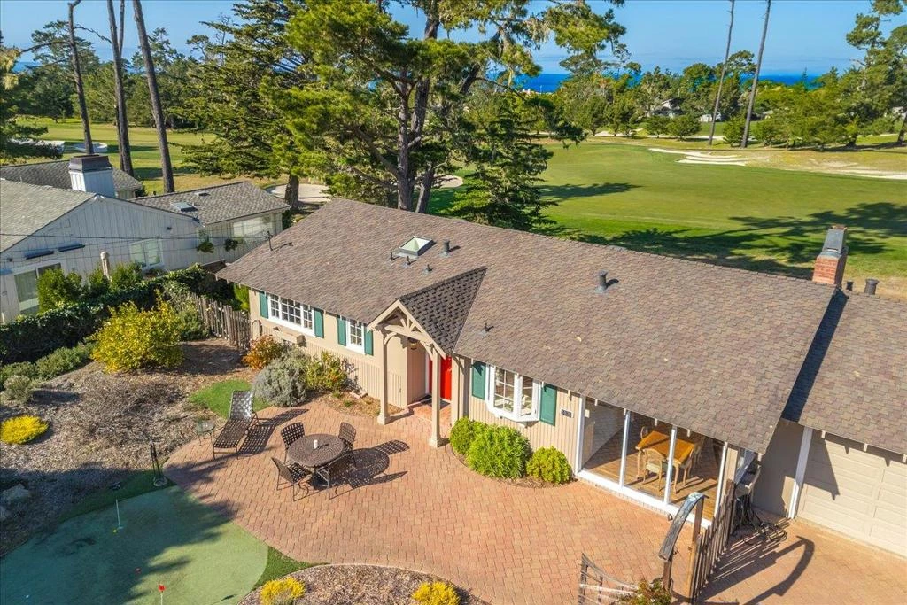 Charming Pebble Beach cottage in the highly desired Country Club West with double fairway views of MPCC Shore #1 and Dunes #18 enhanced by strong peeks of the ocean across to Santa Cruz Mountains. The experience begins in the serene front yard with putting green and large patio perfect for relaxing or entertaining. The inviting floor plan features a kitchen with abundant counter and storage space open to the dining area which flows to the large living room with wall-to-wall windows. Watch golfers going by while sitting in front of your fireplace or on the fully enclosed back patio with raised flowerbeds. The primary bedroom is ensuite while two guest bedrooms with large windows also enjoy the expansive golf course views. Deep 2-car garage includes a separate laundry room and connects to a workshop providing lots of extra storage. The 9,700 sqft lot offers an opportunity to expand if desired along with extra water credits. Don't miss out on this opportunity to live the Pebble Beach lifestyle within minutes to the MPCC clubhouse and a pleasant walk to the ocean.