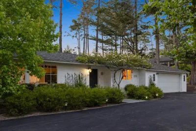 Charming Pebble Beach cottage in highly desired Country Club West. You will be impressed by the double fairway views of MPCC Shore #1 and Dunes #18 with strong peeks of ocean across to Santa Cruz Mountains. The front entrance includes a serene landscaped yard w/putting green and spacious paver patio perfect for relaxing or entertaining. The floor plan features a kitchen with abundant counter and storage space open to the dining area which flows to an oversized living room with wall-to-wall windows. Watch golfers going by while sitting in front of your fireplace or on the fully enclosed back patio with raised flowerbeds. Primary bedroom is ensuite while two guest bedrooms with large windows also enjoy expansive golf course views. Deep 2-car garage includes a separate laundry room and connects to a workshop which has lots of extra storage. Ideally situated 9,700 sqft lot offers a significant opportunity to expand if desired along with extra water credits. Here is your opportunity to live the Pebble Beach lifestyle within minutes of the MPCC clubhouse and ocean.