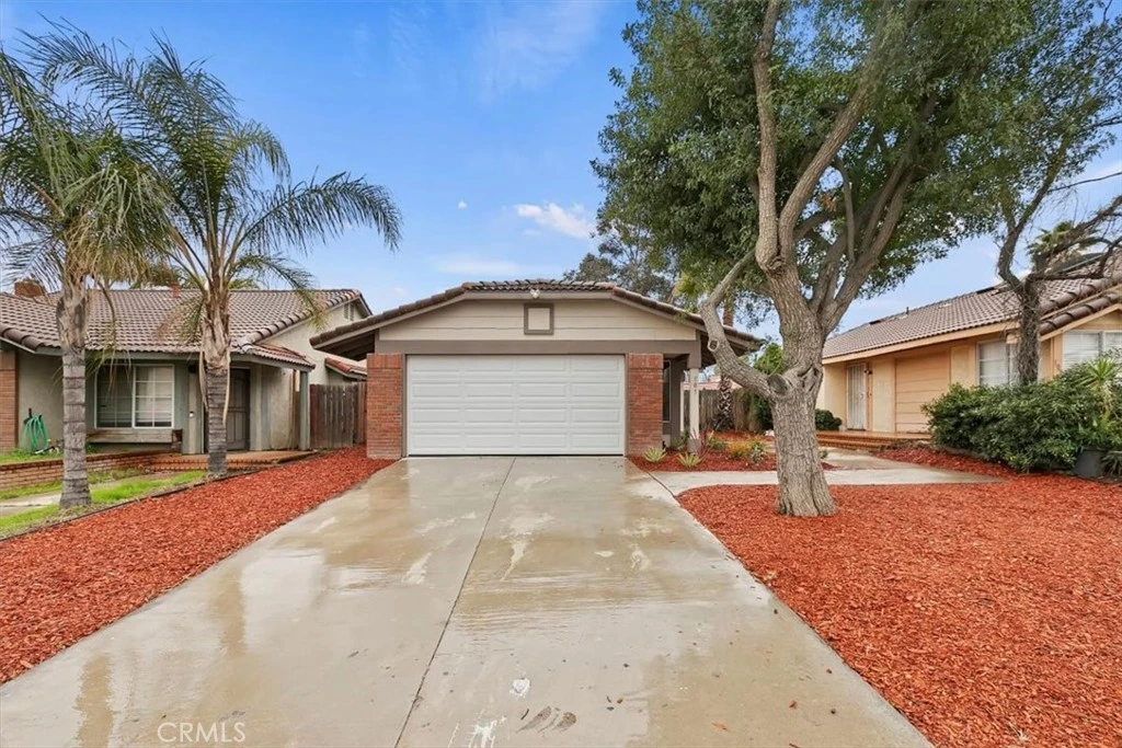 Charming, highly desired single level home is in the Rancho Las Perris community featuring 2 bedrooms, 1 bathroom, 794 square feet of living space and has great curb appeal. This home is perfect for an investor looking for long term renters or for the first-time homeowner looking to start a family. Once you enter this beautiful light & bright home, you will notice new upgraded laminate flooring throughout, new baseboards/door trim and freshly painted interior with neutral colors waiting for your added touch. The family room with a patio door allows for natural light and fresh air. Open to the family room is the dining room with another patio door and is great for mingling with friends & family. The kitchen offers stainless steel appliances, an abundance of cabinets, Granite countertops, recessed lighting and a vaulted ceiling. Down the hall is a linen closet adding additional storage and a full Jack-n-Jill bathroom with low maintenance wide plank floors. The guest bedroom is good in size with a large closet and new ceiling fan. The primary bedroom has a vaulted ceiling, a new ceiling fan, an oversized wall-to-wall closet and shares the fully renovated bathroom. The backyard has new landscaping featuring freshly laid sod, drought tolerant plants, mulch, sprinkler system and the covered patio is perfect for entertaining. The 2-car garage with new garage door/opener, washer/dryer hookups and side entry door for additional access. In April of 2024 roof tiles were removed, new underlayment was installed and any broken tiles were replaced. This home is family oriented & conveniently located to schools, shopping, restaurants, hiking/biking, Soboba Casino & Resort, Diamond Valley, Skinner & Perris Lakes for the avid fisherman or the outdoor enthusiasts, minutes to several of Temecula’s finest Winery’s, Casino’s and the 10, 60, 74, 79 and 215 freeways for your traveling needs.