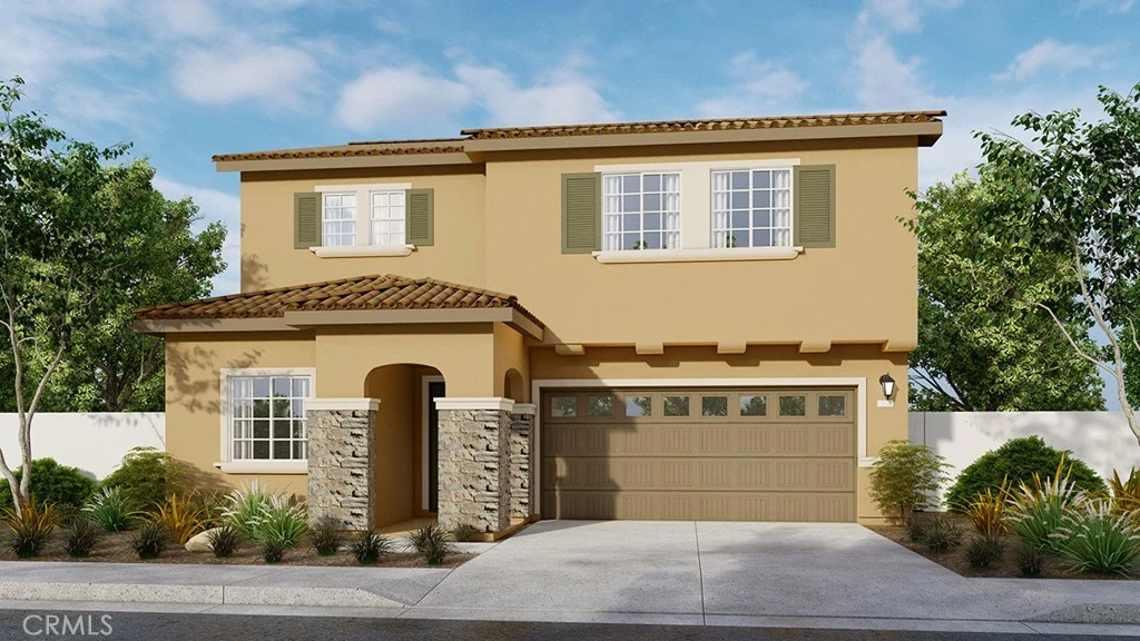 New Construction - This beautiful 2,311 square foot two-story home with an impressive California Tuscan exterior facade. This is a great open floorplan that features a Downstairs Bedroom and Full Bathroom as well as a Nice Sized Great Room that opens up into the Dining Room and Kitchen. The kitchen island has a breakfast bar that includes built-in stainless steel gas cooktop, oven, a microwave, a dishwasher. and [Alto] grey colored shaker-style cabinetry throughout. Upstairs is the primary bedroom with generous walk-in closet, with (3) additional bedrooms, (1) full bathroom a nice sized loft and the Laundry Room. To top it all of there is direct access to a (2) car garage which is pre-plumbed for an electric car and true smart home features that you would expect in a new home. This home also comes with a fully landscaped and irrigated front yard. The community is close to shopping, parks and the 215 freeway is just minutes away, we anticipate the home to ready for move in by February of 2026. Solar is Included in the Price of this Home !