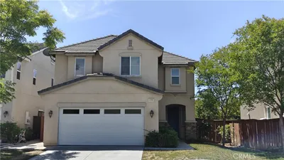 Charming two-story home offering 3 bedrooms plus a den and 2.5 bathrooms, located in the city of Perris. Enter through the inviting front porch into the formal living room. The home has been newly painted throughout and features new flooring in the kitchen, formal dining room, and family room, with plenty of bright and airy windows bringing in natural light.The kitchen showcases granite countertops, new flooring, a double oven, new refrigerator, dishwasher, stainless steel double sink, and microwave. A double sliding glass door leads to the backyard with a newer vinyl fence. The home also offers an upgraded downstairs bathroom and a convenient laundry room.Upstairs includes a spacious bonus room with hardwood flooring, two secondary bedrooms with a shared bathroom, and a hallway leading to the primary suite. The main bedroom is open and spacious, featuring lots of wood work, dual pan windows, a private en-suite bathroom, jacuzzi tub and, a large walk-in closet with build-in shelving.The professionally landscaped front and backyard include a large covered patio with ceramic tile flooring, brand new vinyl fence—perfect for outdoor entertaining. Additional highlights include a two-car attached garage with custom shelving. Conveniently located near parks, the 215 freeway, schools, and shopping centers.