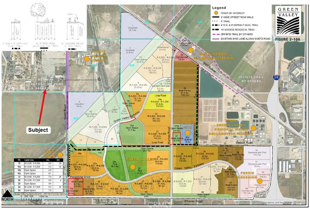 Four parcels totaling 6.73 acres. Heavy Industrial zoning in one of the premier distribution markets in the country. Adjacent to Perris Logistics Center South and near the Menifee Economic Development Corridor employment hub. Currently generating income as a 20-space RV park plus three single-family homes.