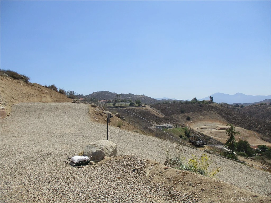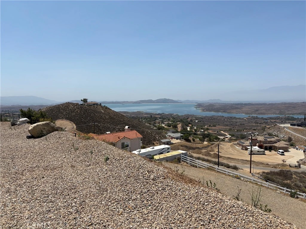 Breathtaking view 2.5 acres building lot. Panoramic view of Lake Mathews, mountains and valleys. You can see for miles. The view is approximately 300 degrees of unobstructed view. This fabulous view lot is ahead of many of the lots for sale, because of the work done by seller. Permits are granted, filled and signed off. This makes months of waiting and work done by seller that would be saved over unimproved lots. Definitely something to consider when planning to build. The lot grading plan and house pad have finalized approval by Riverside County. Water is connected with water meter. Electricity is ready to pull, next to property. The retaining wall is permitted. There is fire truck knockout. At the top of the lot is a metal carport. The lot is completely fenced with wire fencing and white vinyl fencing at front gate entrance. All the hard work is done! This lot is ready to build!