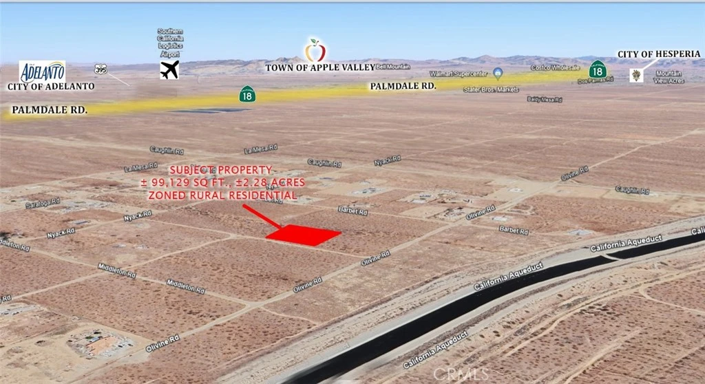 ±2.28ac Vacant Land Parcel. Excellent location for your new home or invest for the future. Rural area with plenty of room for outdoor activities or equestrian uses. Close proximity to the California Aqueduct. East side of Windermere Rd just 330 feet north of Olivine Rd. Less than 2 miles south of Hwy 18 / Palmdale Rd. Electricity one block east on Barbet Rd. Water is at the corner of Olivine Rd & Barbet Rd approx. 1,000 feet away. Seller may be willing to entertain a carry back scenario. Come make an offer today!
