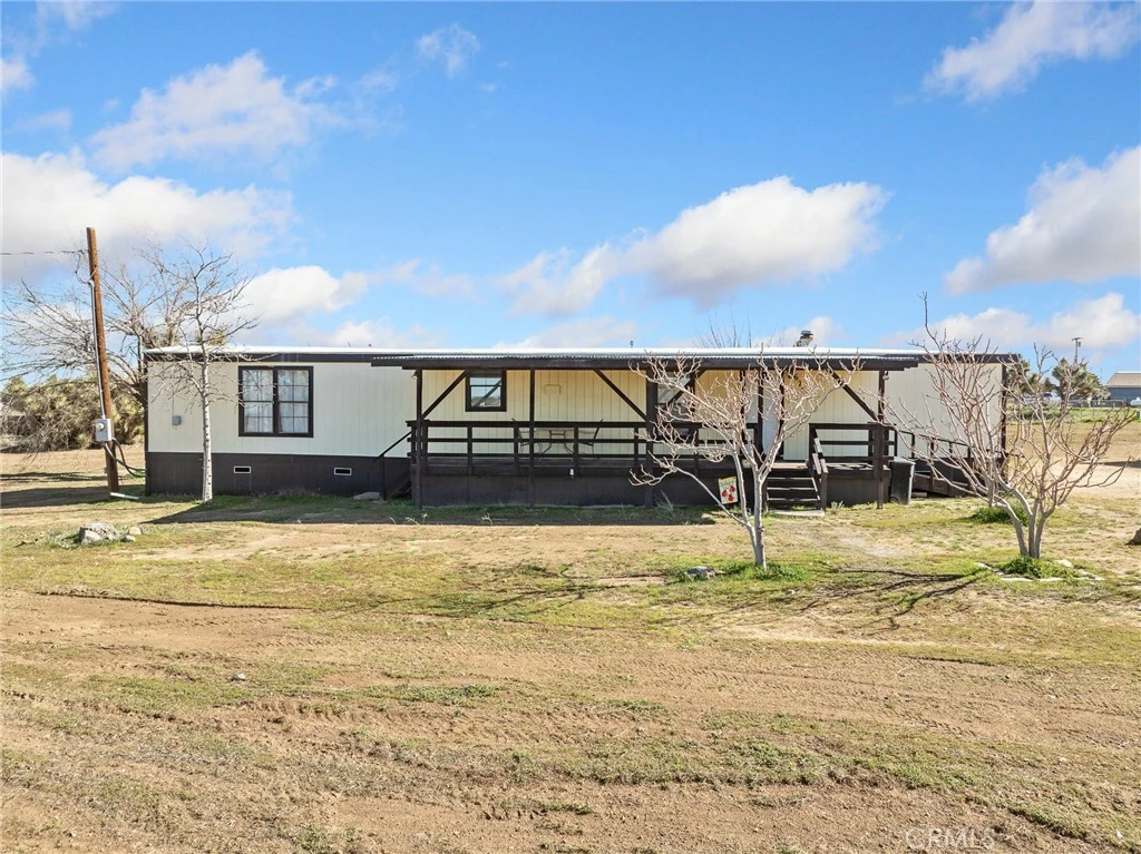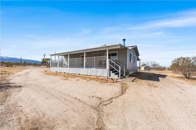 Cute and cozy 2 bedroom 2 bath manufactured home sitting on a spacious 2.07 +/- acre lot with a gigantic 4 car detached frame built garage. This property will charm you immediately with its large covered front porch to enjoy the desert and mountain views. The home is straight forward in that you enter into the living room which leads to the kitchen and dining area. The home has a split floor plan with the primary bedroom and bath on one side of the home and the other bedroom and hall bath located on the other. The home has been well cared for over the years and is move in ready. The detached garage has 1,125 square feet of garage space and is the perfect spot to store vehicles, toys, or have a great shop in. This home is on a permanent foundation and qualifies for FHA, VA, USDA, and other available financing. Both the front and back access to the home have ramp access to the entry doors making the home wheel chair accessible. The property is close to paved Wilson Ranch Rd and has easy access to schools, downtown, and highway for commuting purposes. This property is zoned for horses and located in the Snow Line School District.