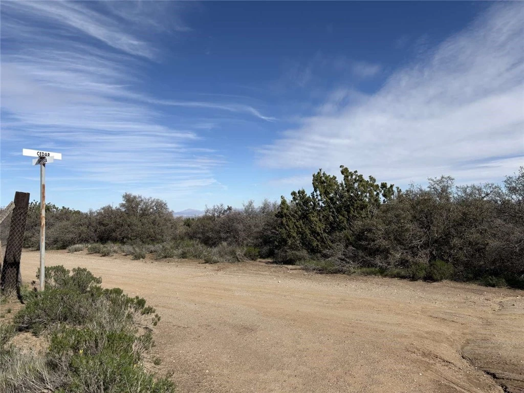 5 Acre land. Corner lot off a county maintained road. Flat usable property. Water, electric and high speed fiber available at road. Views of Wrightwood mountains to build your dream home.