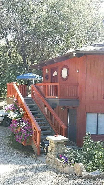Beautiful hexagon chalet newly remodeled interior and exterior. A wonderful mountain cabin surrounded by old oaks and pines for privacy and shade. The great room is on the second floor to give you the feel of a tree house with bedrooms on the first floor. Free standing wood fireplace adds to the cabin's charm with the feel of a campfire. The lot is level. Lots of large and useable back and side yards. 800 Sq ft of decking around the home for lounging, BBQ'ing, entertaining. Over 200 Sq ft of fully enclosed, door locked storage space under the newly built deck on west side. Custom tile in bathrooms and kitchen. Tankless water heater installed. Water filtration system installed. Reverse osmosis water tap at kitchen sink. All new electrical switches and receptacles. 30 Amp plug for RV hook up under deck at driveway. Brand new roof, gutters and downspouts. Top of the line Owens Corning Premium Cool roof installation. Solar fan installed at the apex of the living room vault that sucks all the hot air out the roof, keeping the house cool during hot days. I've lived here for five years. The hexagon is nature's architectural masterpiece! The Bees know how to build!!! I've done a lot to make this place special for anyone who wants to make this mountain community their home. Absolutely no smoking allowed. Non-smokers only.