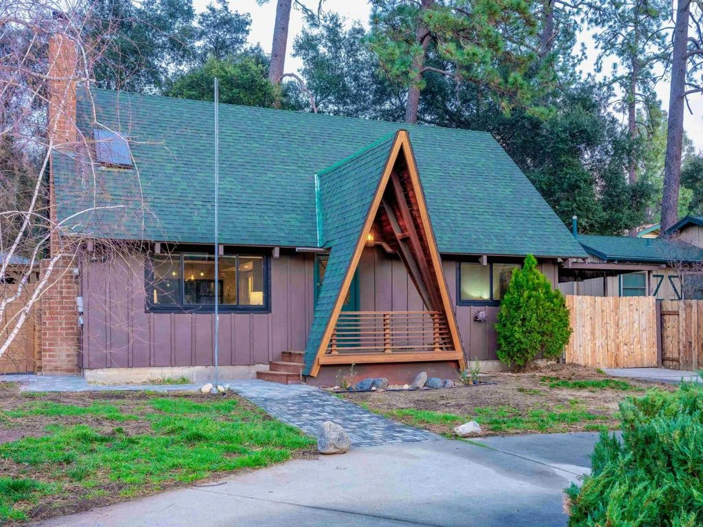 Step into this beautifully remodeled A-frame home, where rustic charm meets modern sophistication. Nestled on a generous quarter-acre lot, this property offers a serene escape with ample space for relaxation and outdoor activities. The heart of the home is its open-concept kitchen, designed to inspire culinary creativity and warm gatherings. Featuring a large center island, sleek stainless steel appliances, and a charming farmhouse sink, this kitchen is both functional and stylish. The expansive windows provide a picturesque view of the backyard, allowing natural light to flood the space and create a warm, inviting atmosphere. The living room is a cozy haven, perfect for unwinding after a long day. With a wood-burning fireplace as its centerpiece, the room exudes warmth and comfort. Natural light pours in through the skylight, highlighting the elegant Pella doors and windows that frame the space. Real wood floors add to the home's rustic charm, while mini-split heat and air units in each room ensure personalized comfort year-round. The bathroom features a custom stone shower, a rustic wood vanity with a sleek glass sink top, and sconce lighting that adds a touch of elegance. The wood-beamed ceilings throughout the home enhance its rustic appeal, creating a cohesive and charming aesthetic. Upstairs, the enclosed loft-style bedroom offers a unique and private sanctuary. Plumbed and ready for a bath, this space presents the perfect opportunity to create a primary retreat tailored to your personal taste. Whether used as a primary suite, a guest room, or a creative studio, this loft is a versatile addition to the home. The property's quarter-acre lot provides a canvas for outdoor living and entertaining. Imagine hosting summer barbecues, gardening, or simply enjoying the tranquility of your surroundings. The spacious yard offers endless possibilities for creating your own outdoor oasis. Located in a peaceful neighborhood, this A-frame retreat is more than just a home; it's a lifestyle. With its blend of modern amenities and rustic charm, it offers a unique living experience that caters to both comfort and style. Whether you're looking for a permanent residence or a weekend getaway, this property promises to be a cherished retreat.