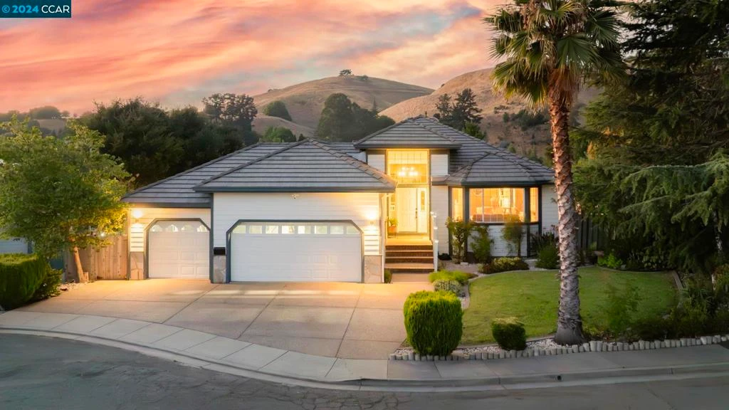 Step into a world of elegance at 4072 Marcas in Pinole Valley. This 4-bedroom, 3-bathroom home, spanning 2890 sqft, is tucked away in a quiet court location with stunning views of rolling hills. The grand entrance boasts tile floors, tall ceilings, and an abundance of natural light flowing into the living and dining room combo. The home features newer waterproof laminate flooring throughout most of the main living spaces, combining both style and durability. Conveniently, one bedroom and bathroom are on the main level, while three bedrooms and two bathrooms are on the lower level. The primary suite is a private retreat, boasting a lavish en-suite bathroom with cultured marble floors and countertops, double sinks, a soaking tub, a large walk-in shower equipped with double rain shower heads and body jets, and a spacious closet. The family room flows into the open-concept kitchen, complete with abundant cabinet space, an island, a double oven, and seamless access to the backyard, making it perfect for entertaining. Step outside to the expansive deck and backyard, ideal for outdoor dining, play, and relaxation. Additional features include a 3-car garage, EV charger, newer AC & furnace, and a laundry room with a sink. This exceptional home combines luxury, comfort, and functionality.