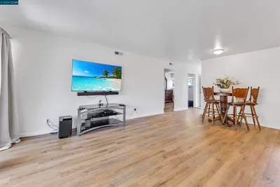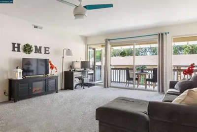Spectacular Pinole Shores location. Reach out and touch the Bay! Short walk to the regional shoreline park. Comfortable ground floor unit. 1-level floorplan. 2 bedrooms, 2 bathrooms. Primary suite features slider access to back yard patio and Bay view. Updated kitchen. New laminate flooring installed earlier this year. New Furnace and A/C installed last year. Fireplace in living room. Inside laundry. Access to detached garage a few steps from front door. A must see!